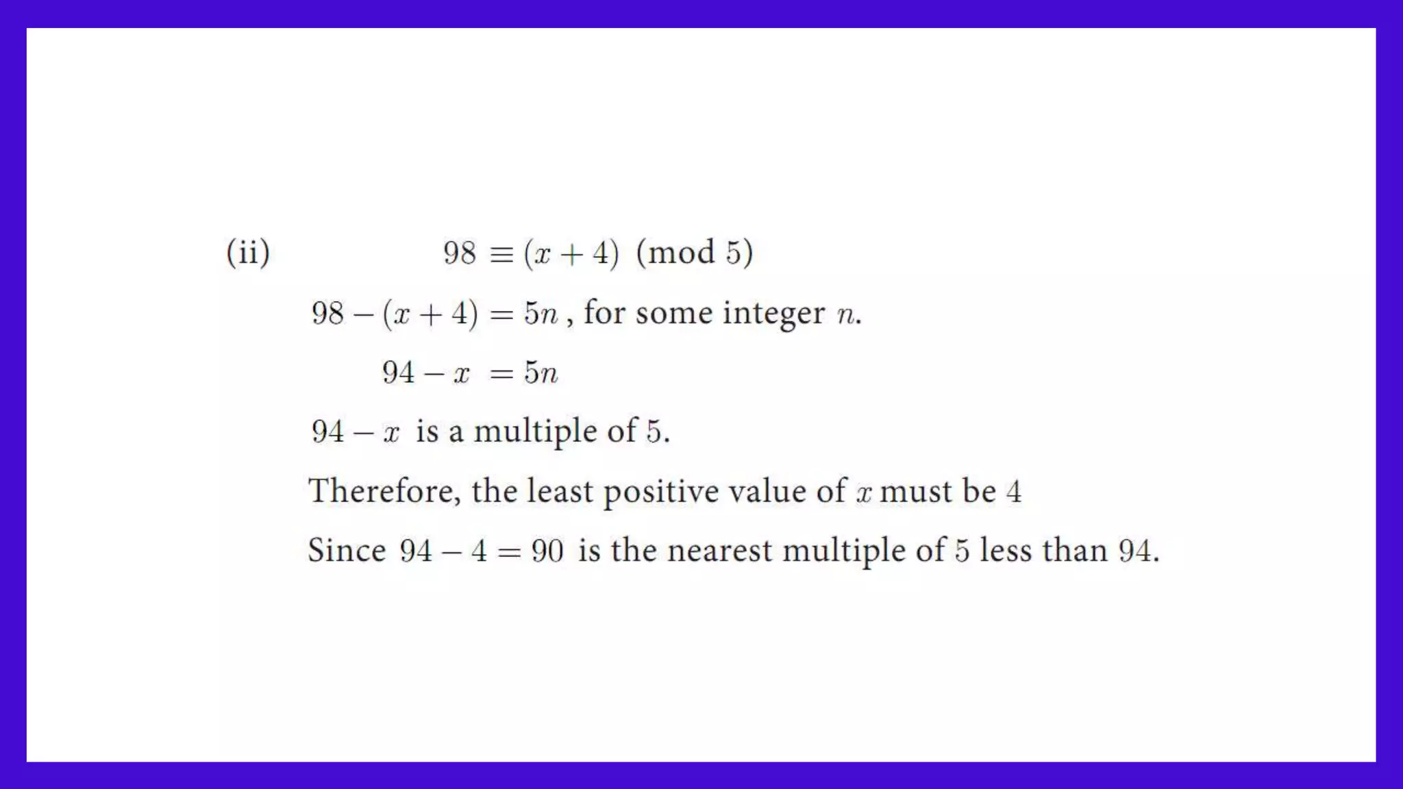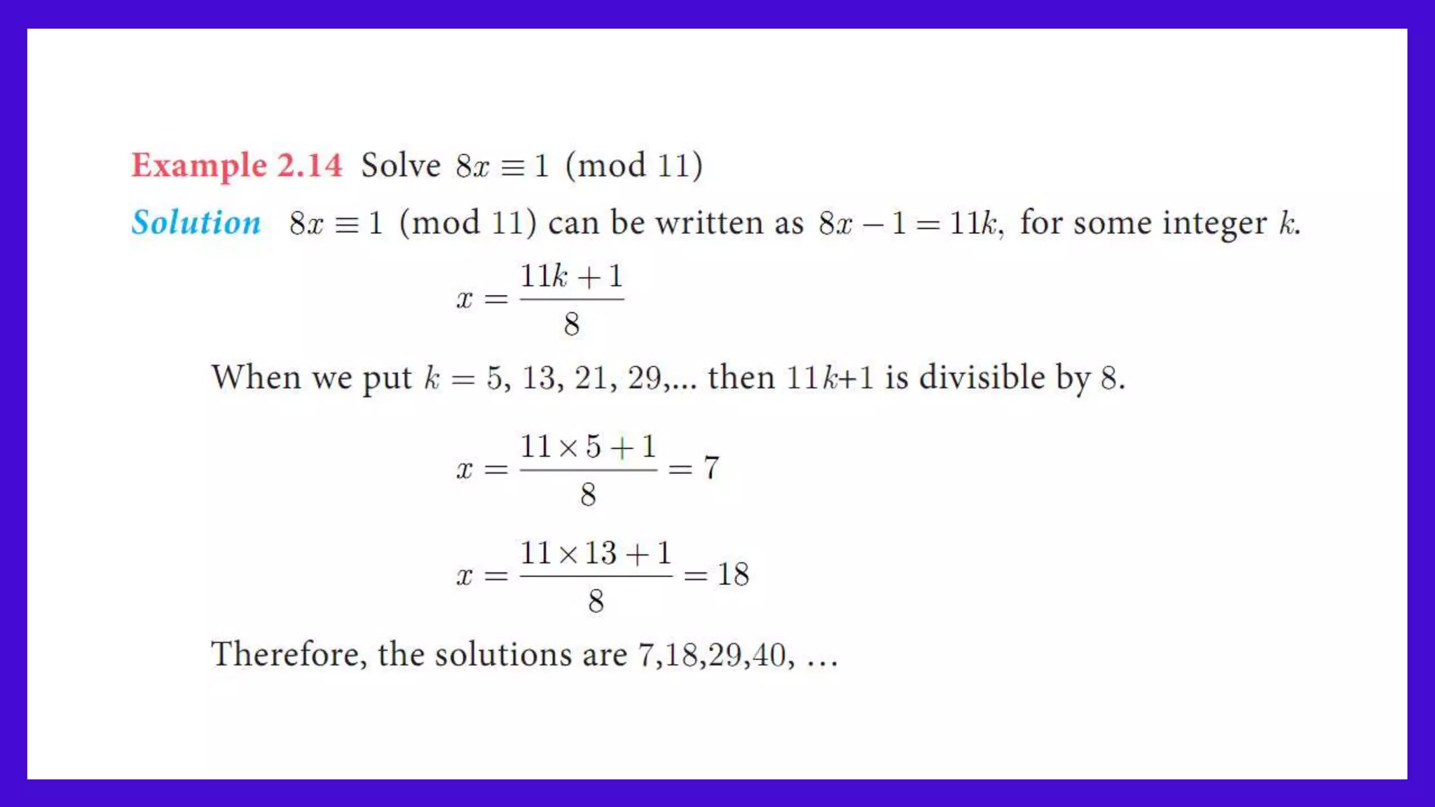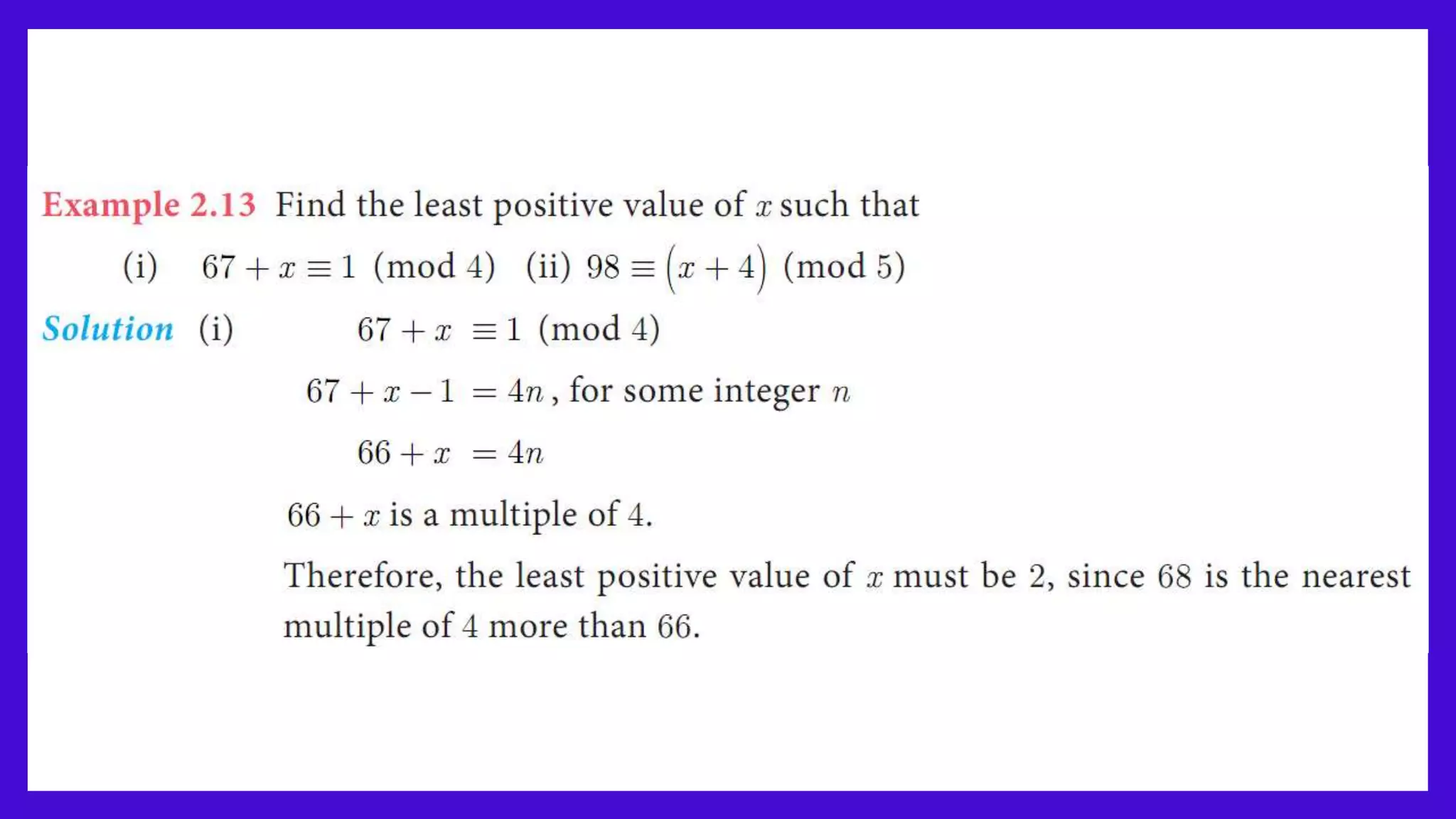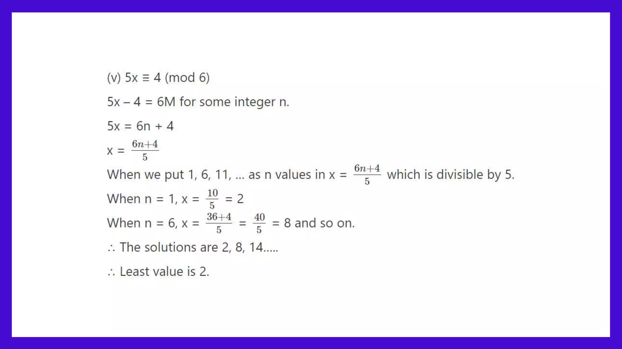 The document explores mathematical concepts related to modular arithmetic, providing solutions for various congruences and equations. It presents step-by-step calculations to determine the least values of x for different modular scenarios. Key solutions include finding x values that are congruent to specific numbers within modular constraints.