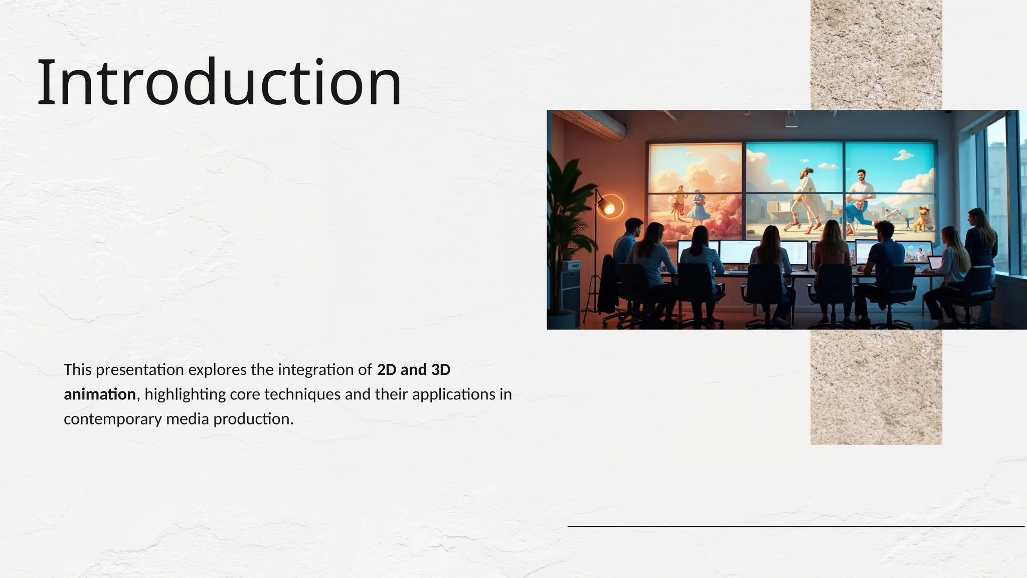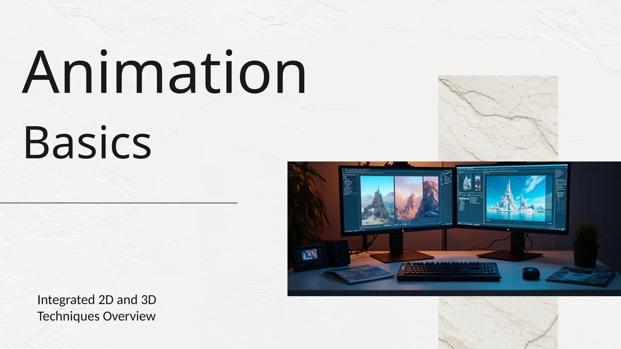Explore the world of 3D animation — from modeling and texturing to lighting and motion. This presentation showcases the techniques and tools used to create lifelike digital worlds.