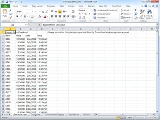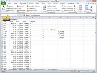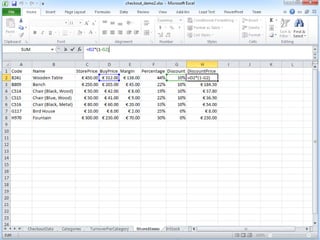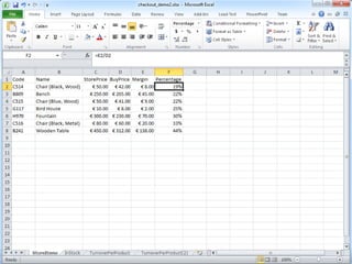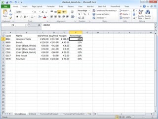This document provides tips for organizing data in spreadsheets. It recommends keeping data and formulas separate by clearly marking or separating them. Formulas should have one link each and reference data locally rather than through multiple links, for robustness and simplicity. Additional tips include always including units with numbers, especially financial ones, and avoiding exceptions in formulas by having one formula per row or column.