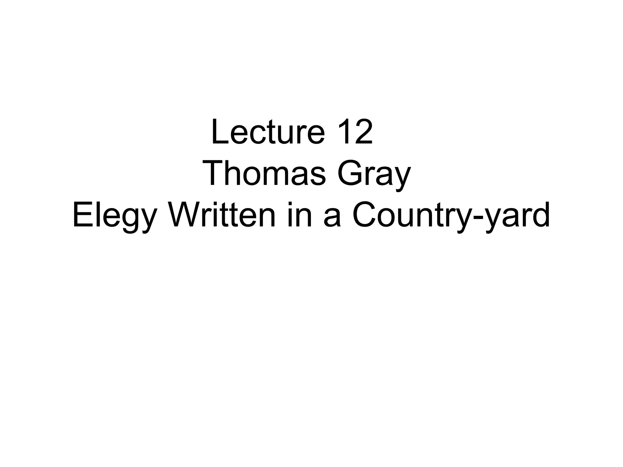 Thomas Gray's poem "Elegy Written in a Country Churchyard" is summarized as follows: