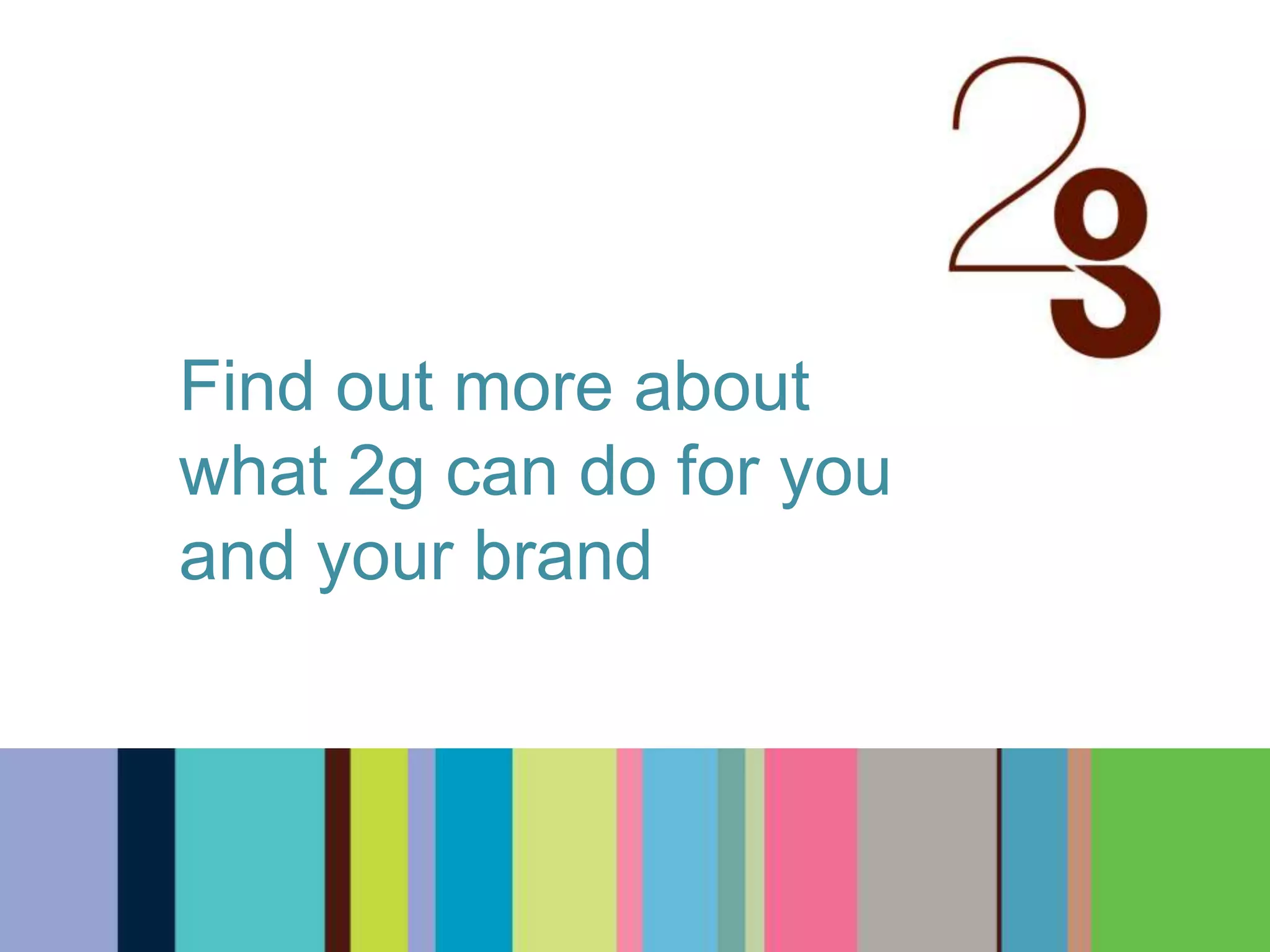 2g is a design agency based in Cambridge that offers complete communication solutions including branding, print design, web design, and photography. They pride themselves on clean, classic design that meets clients' needs and budgets. They provide examples of work for various clients, describing the design work and solutions they provided for branding, marketing collateral, websites, and other projects. Testimonials from past clients praise 2g's understanding of design briefs and ability to deliver excellent work.