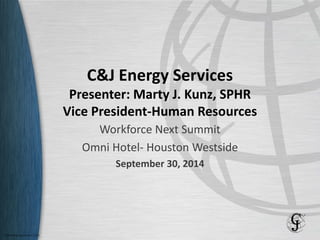 The document discusses the integration and culture development strategies within mergers and acquisitions (M&A) in the energy sector, focusing on C&J Energy Services and its various acquisitions. It emphasizes the importance of HR's role in assessing cultural fit, managing talent, and facilitating smooth transitions during M&A activities. Key insights include the need for effective communication, talent management, and retention strategies during the integration process.