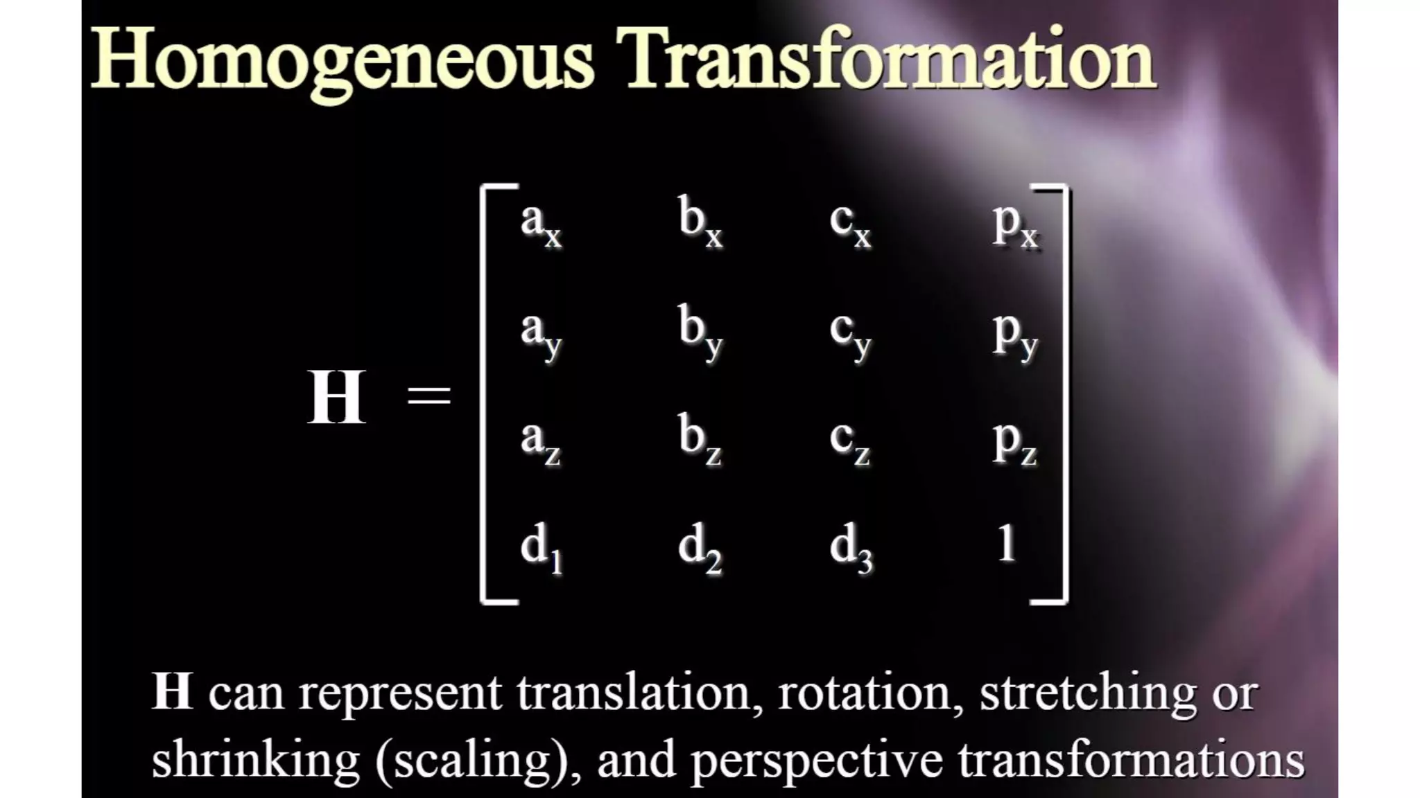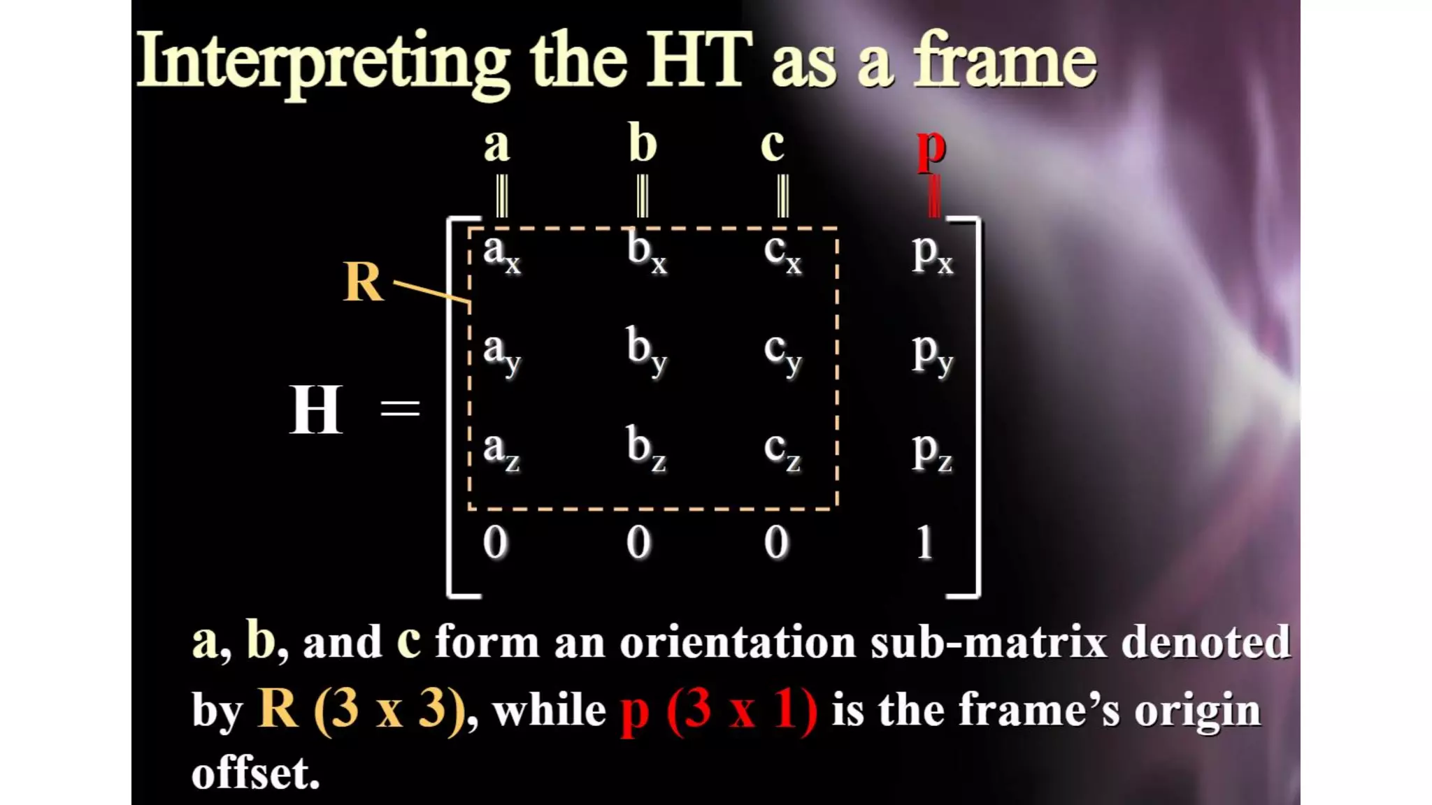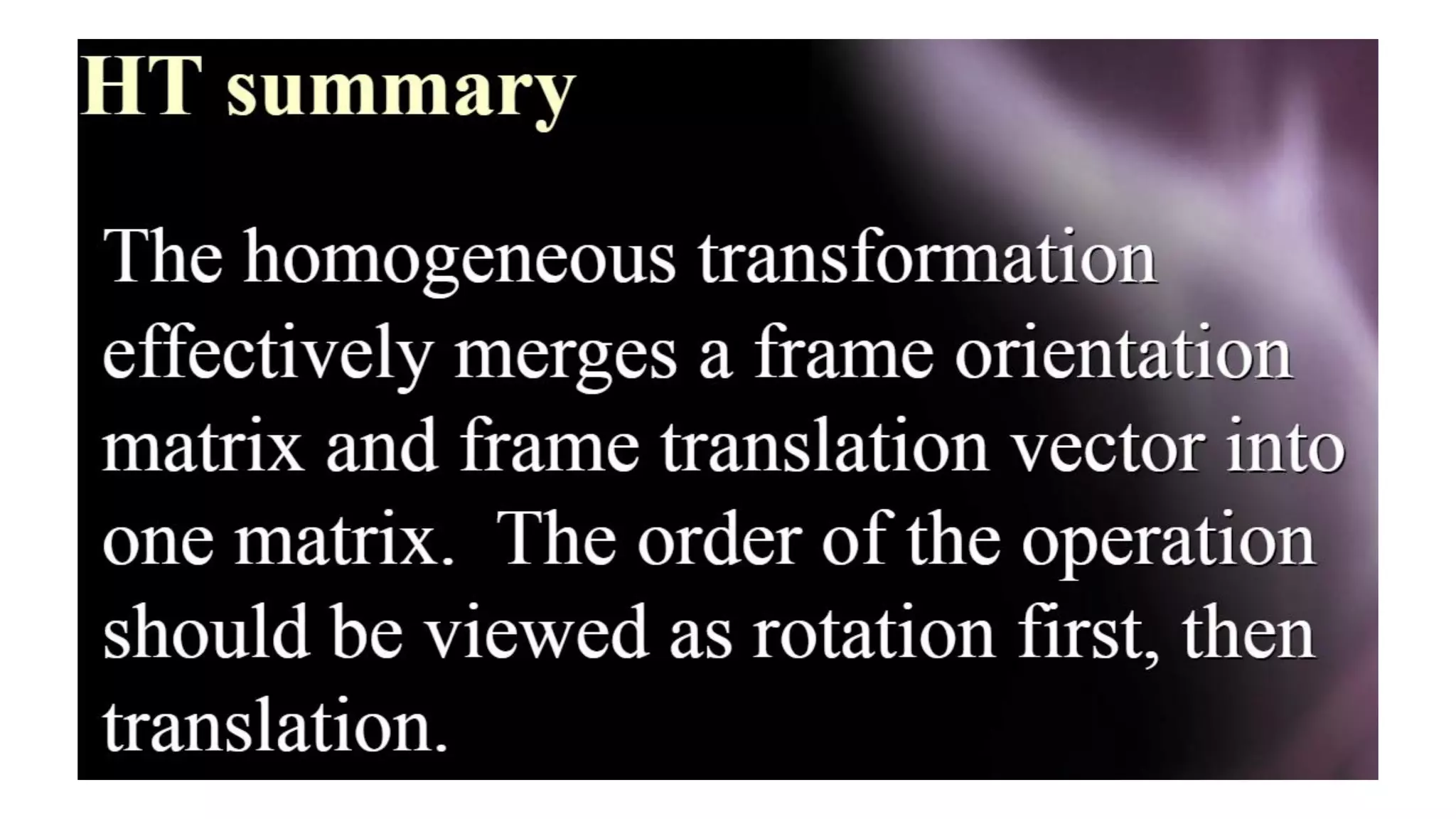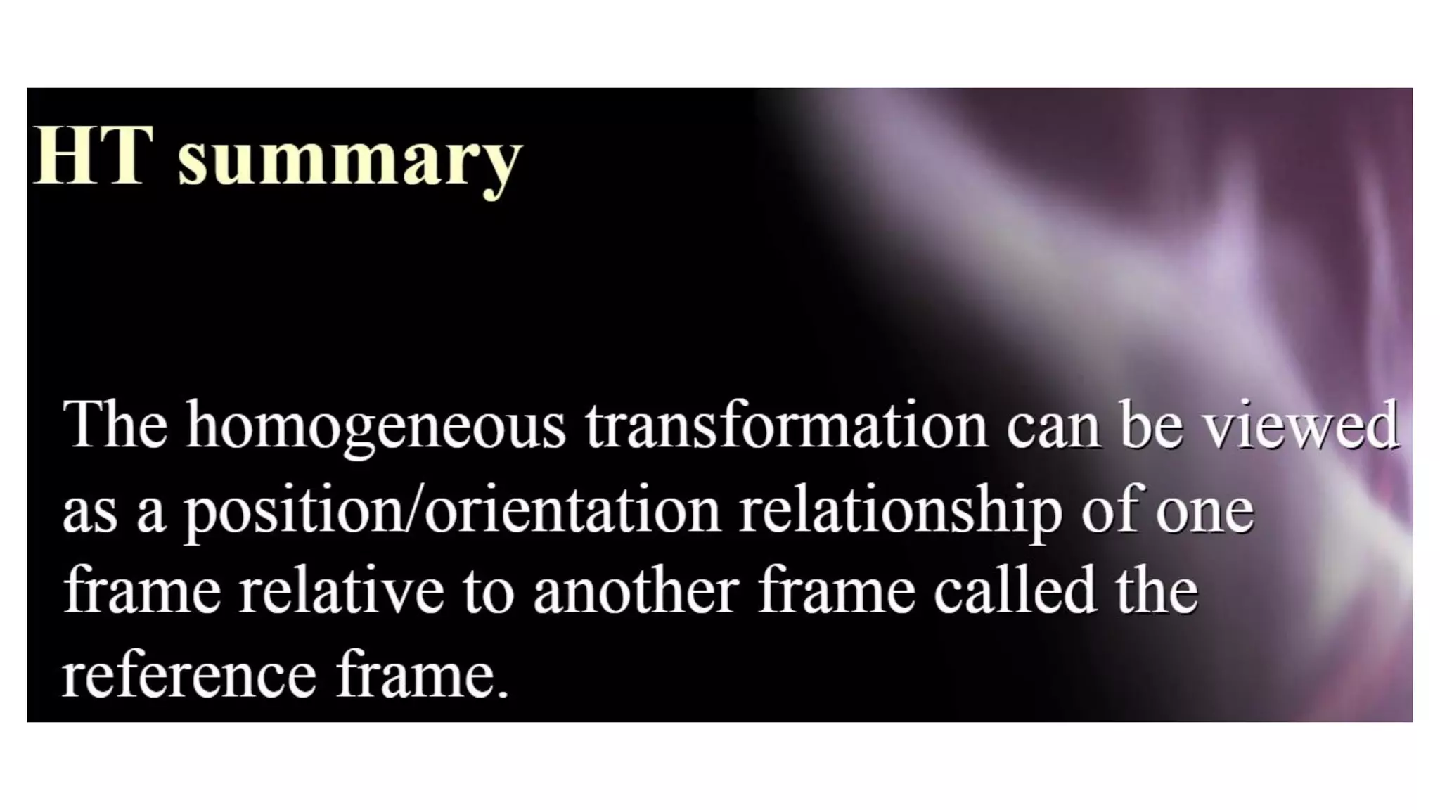 - The Denavit-Hartenberg (DH) convention defines a mathematical representation of a robot's kinematic structure using link parameters like link length, twist, offset and joint angle.