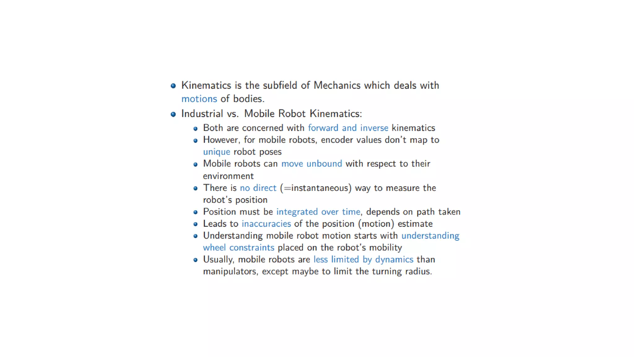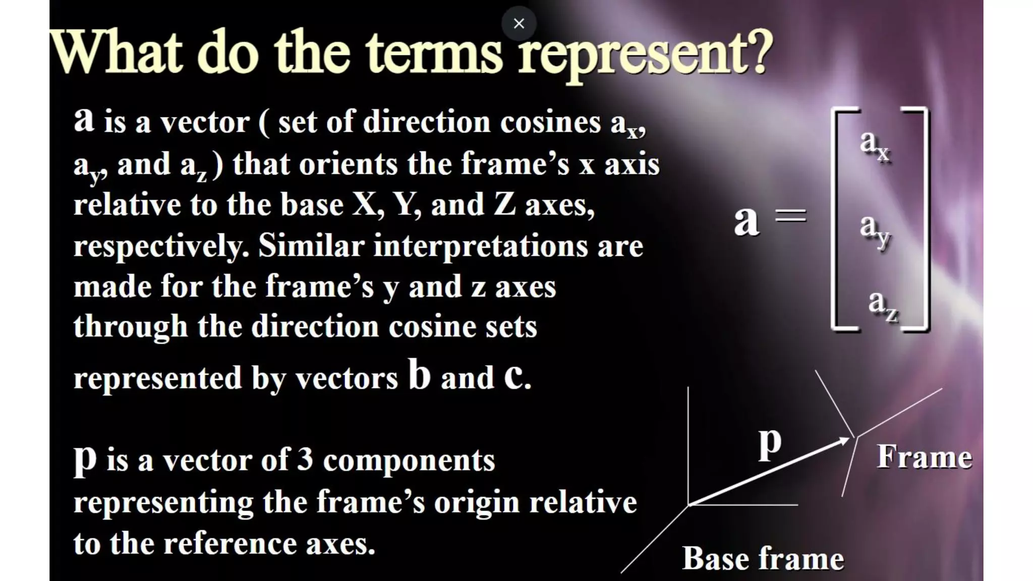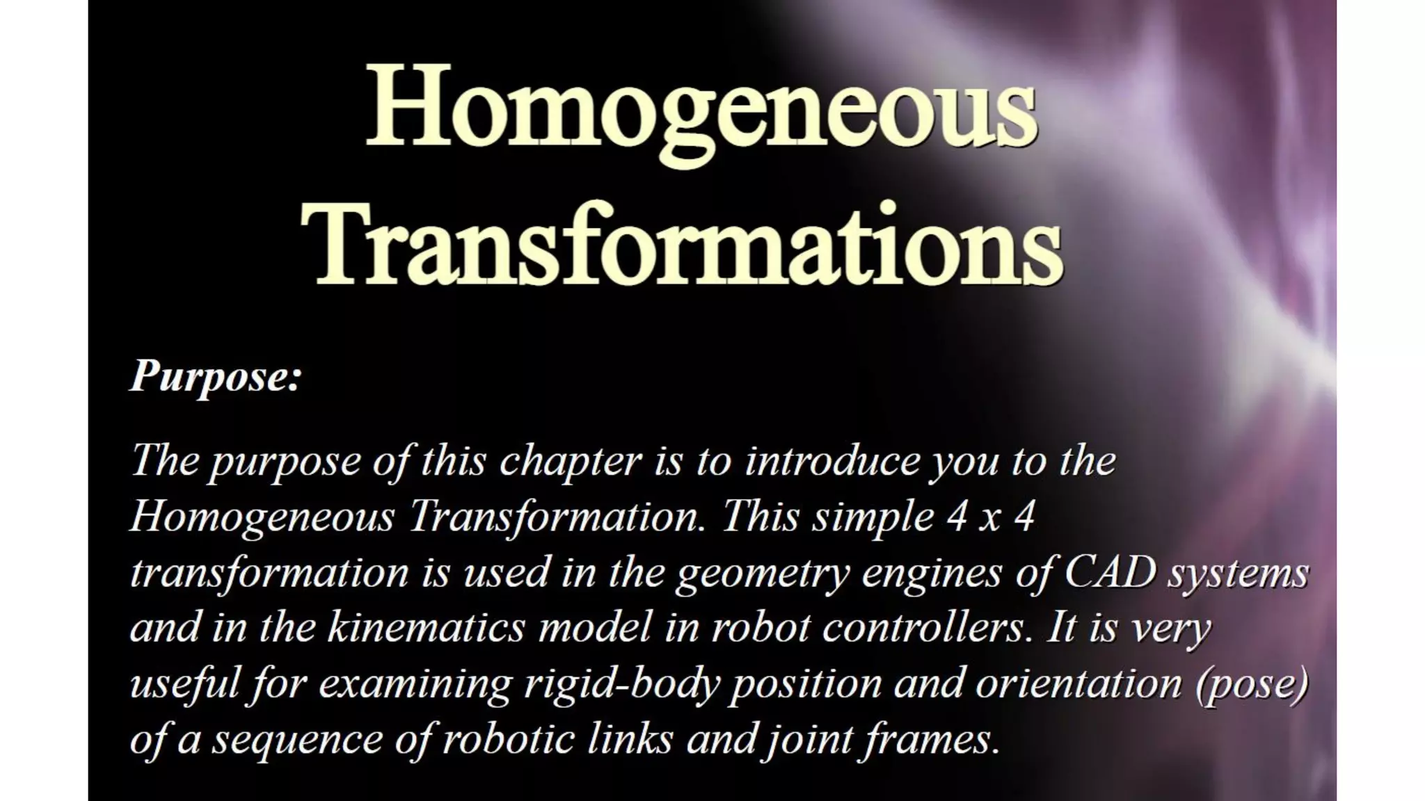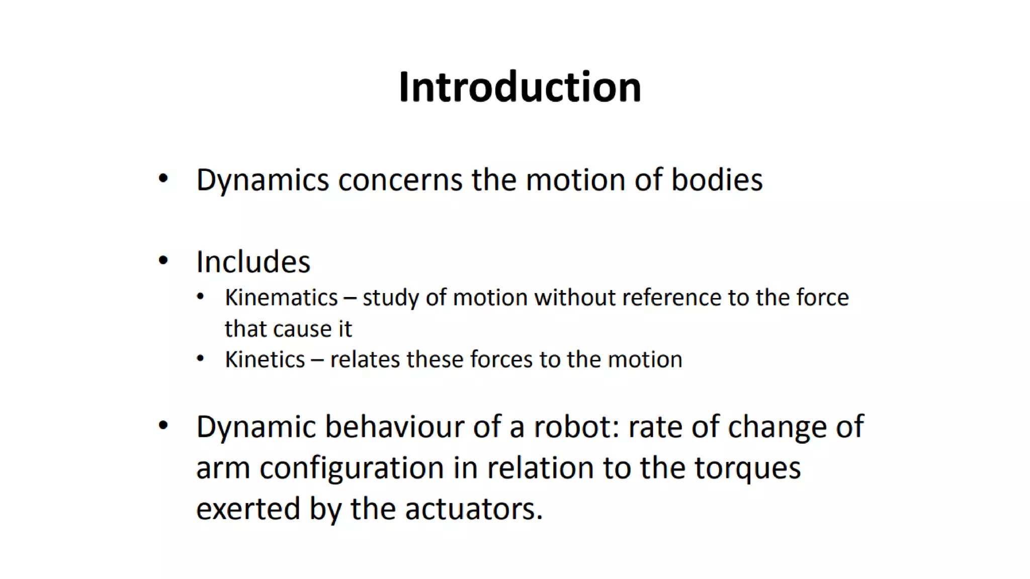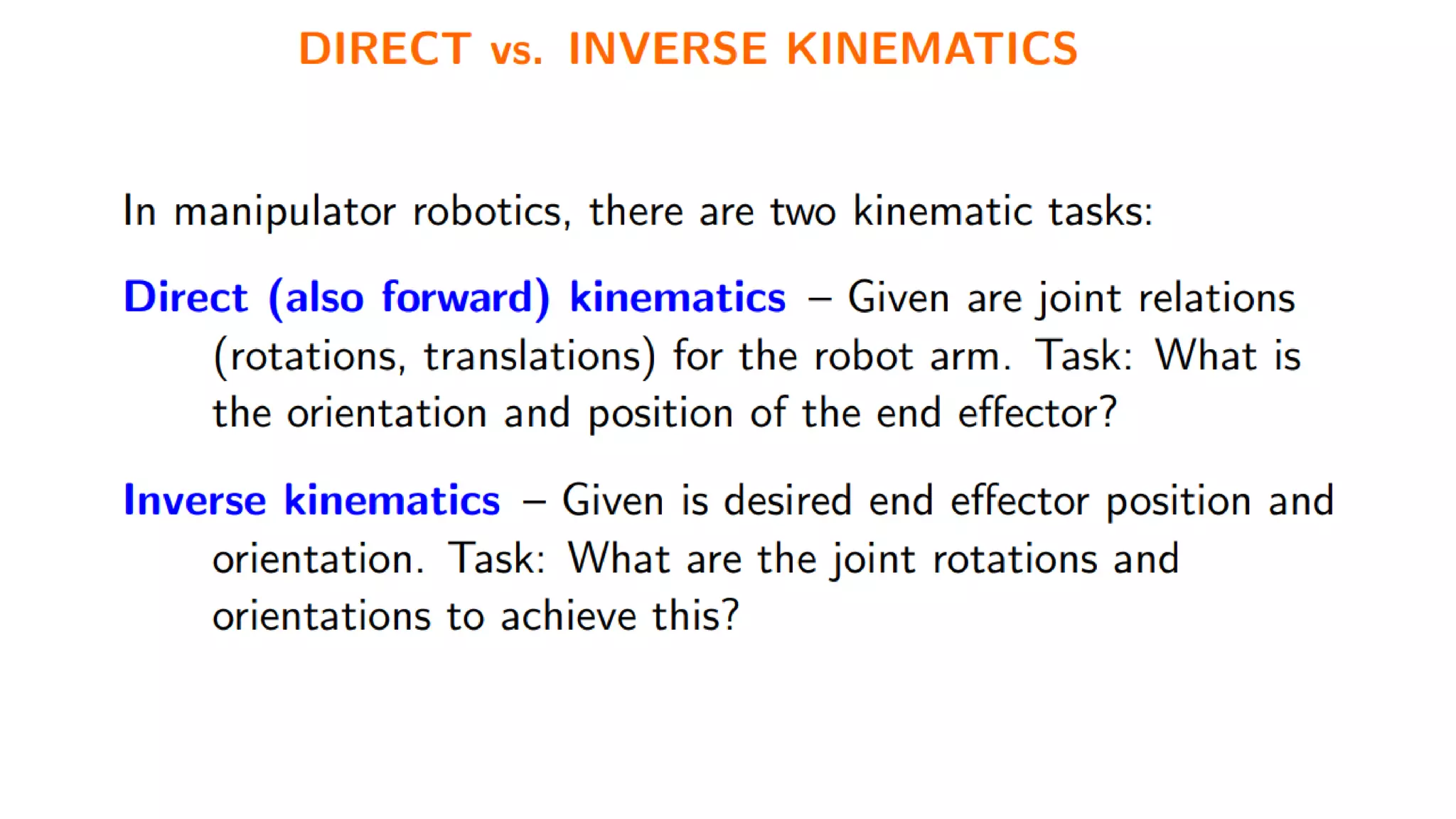This document discusses robot kinematics and provides definitions and explanations of key terms: