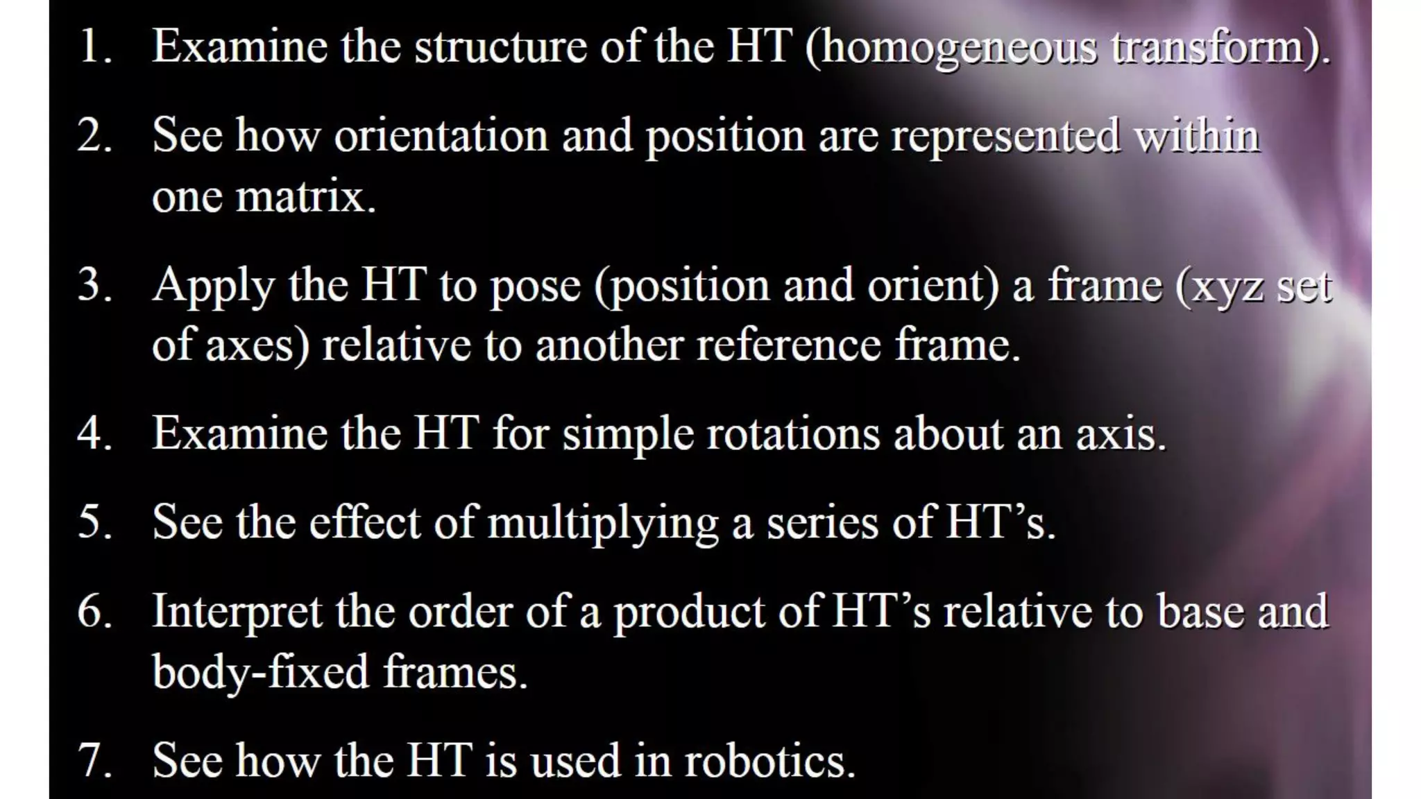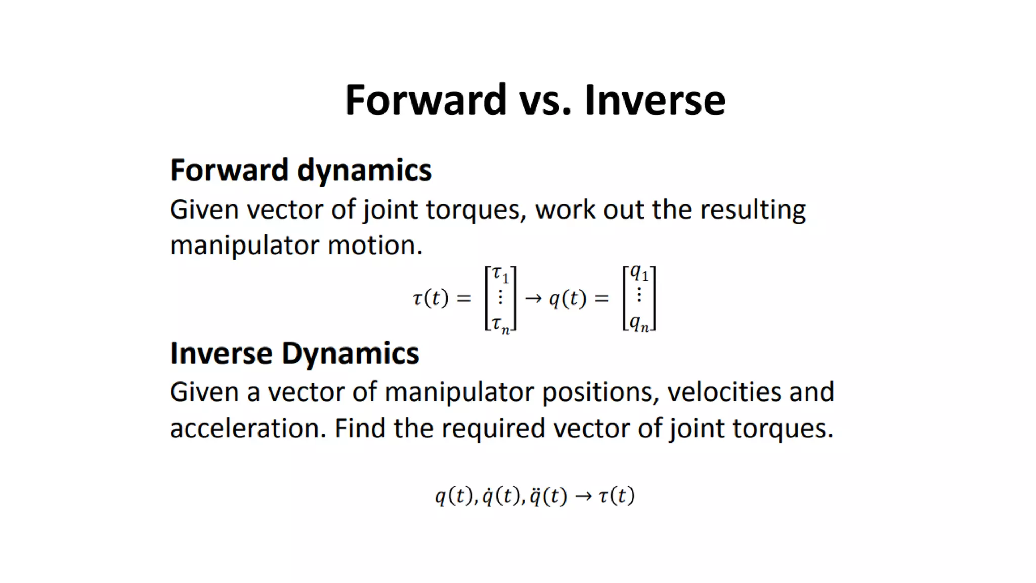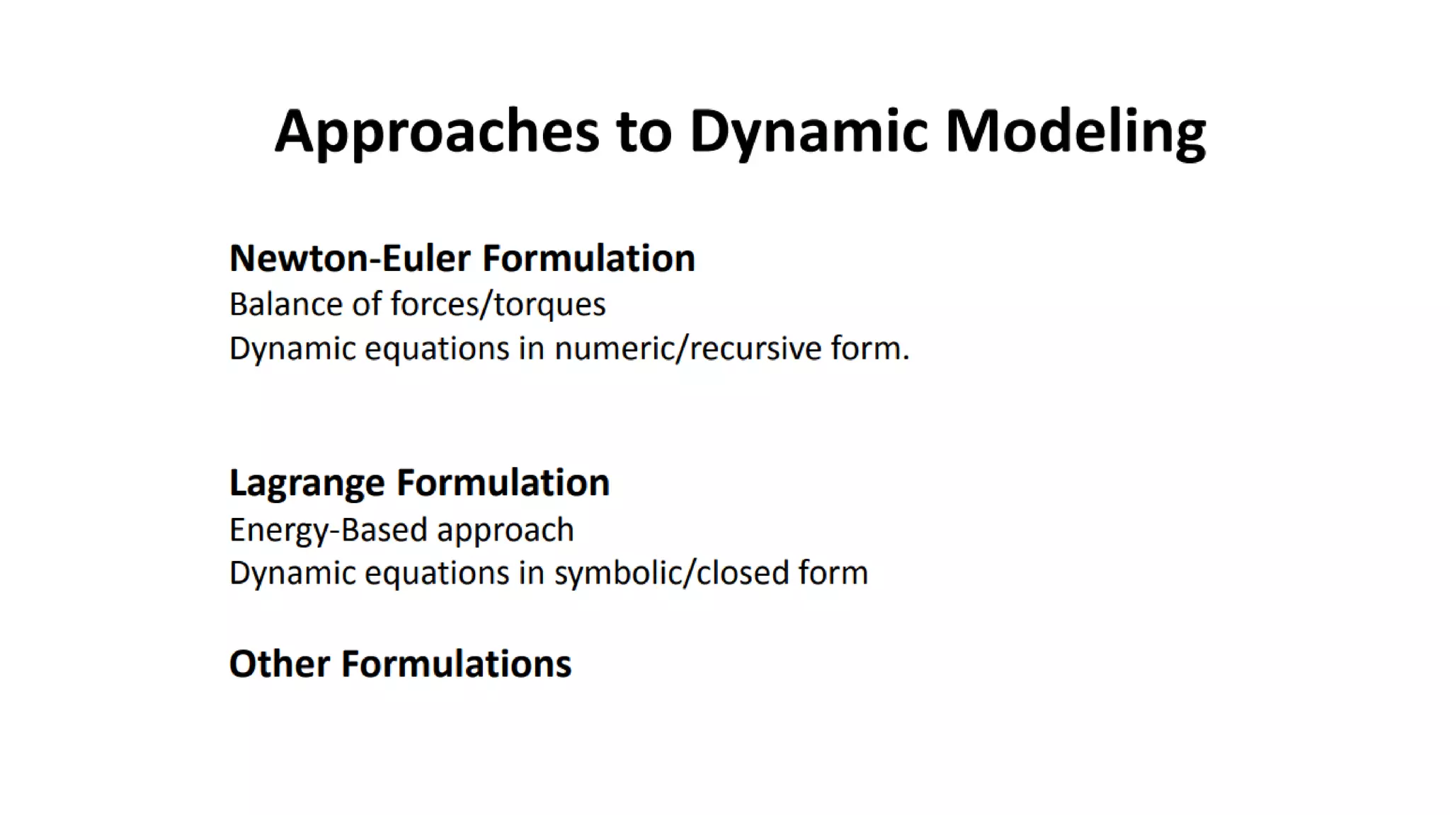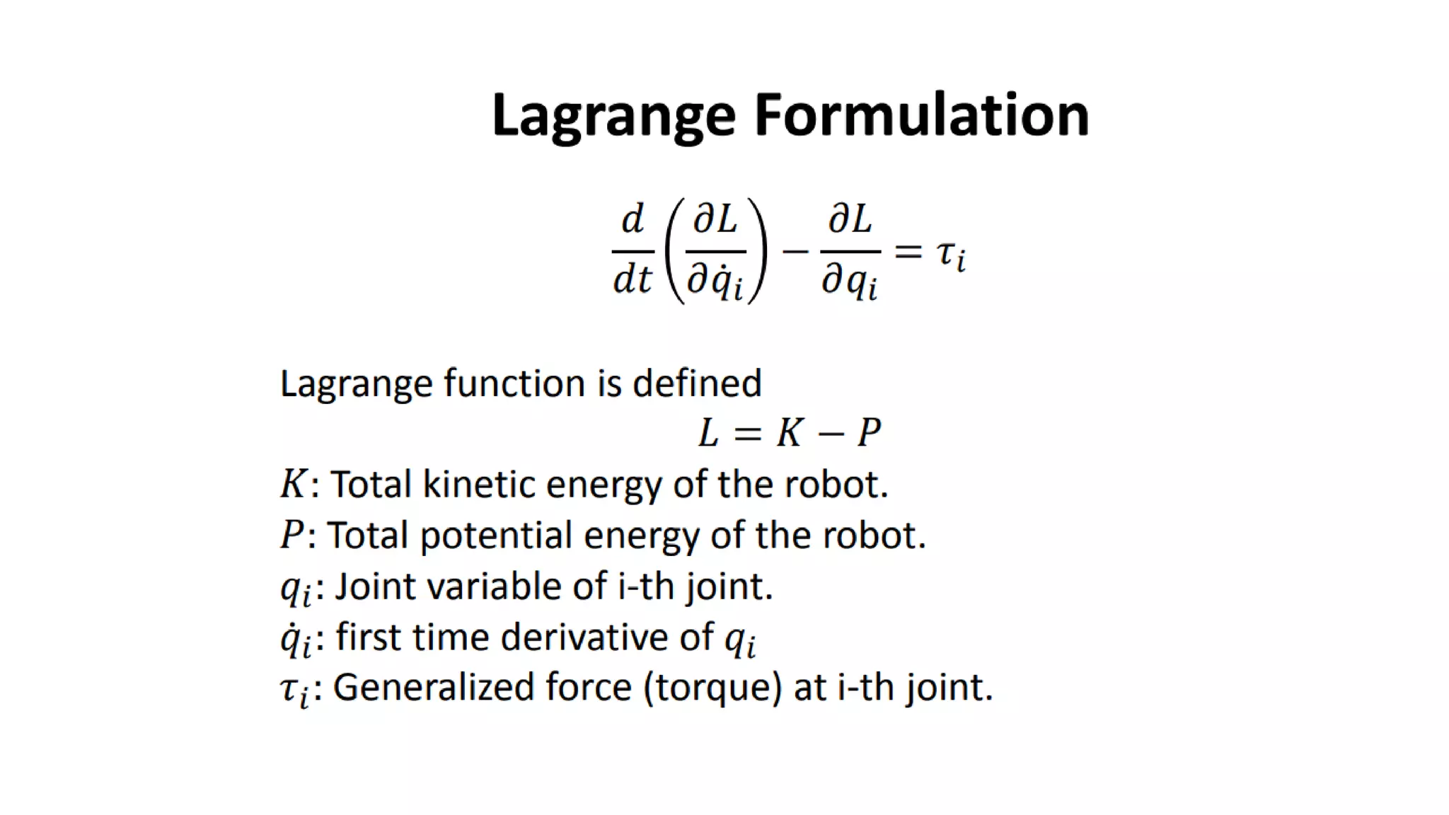 - There are different types of joints (revolute, prismatic, etc.) and each provides a degree of freedom (DOF) of motion.