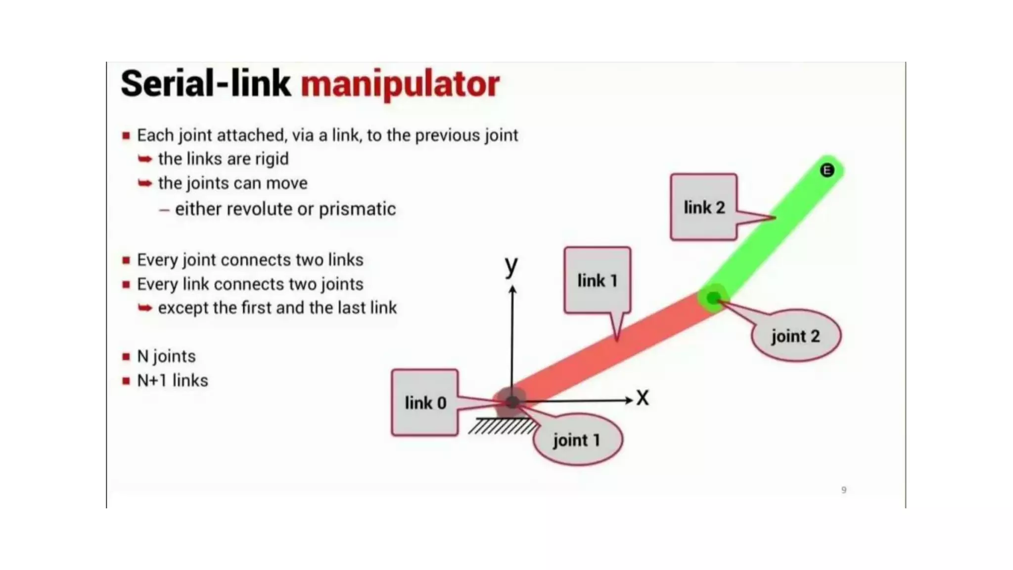 - A link is a rigid part of a robot that connects joints. Joints allow motion between connected links.
