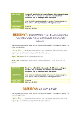 OBJECTIUS Afavorir la reflexió i la integració dels diferents continguts