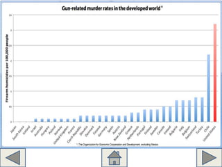The document discusses the right to bear arms as established in the 2nd Amendment of the US Constitution. It provides background on influential thinkers like John Locke and how they shaped ideas around natural rights. It then examines each of the first 10 amendments of the Bill of Rights, including the 2nd Amendment's establishment of the right to bear arms. The document discusses debates around gun control and stricter laws, providing arguments on both sides of the issue and concluding that common sense restrictions could help protect human life, especially children, while still respecting gun ownership rights.