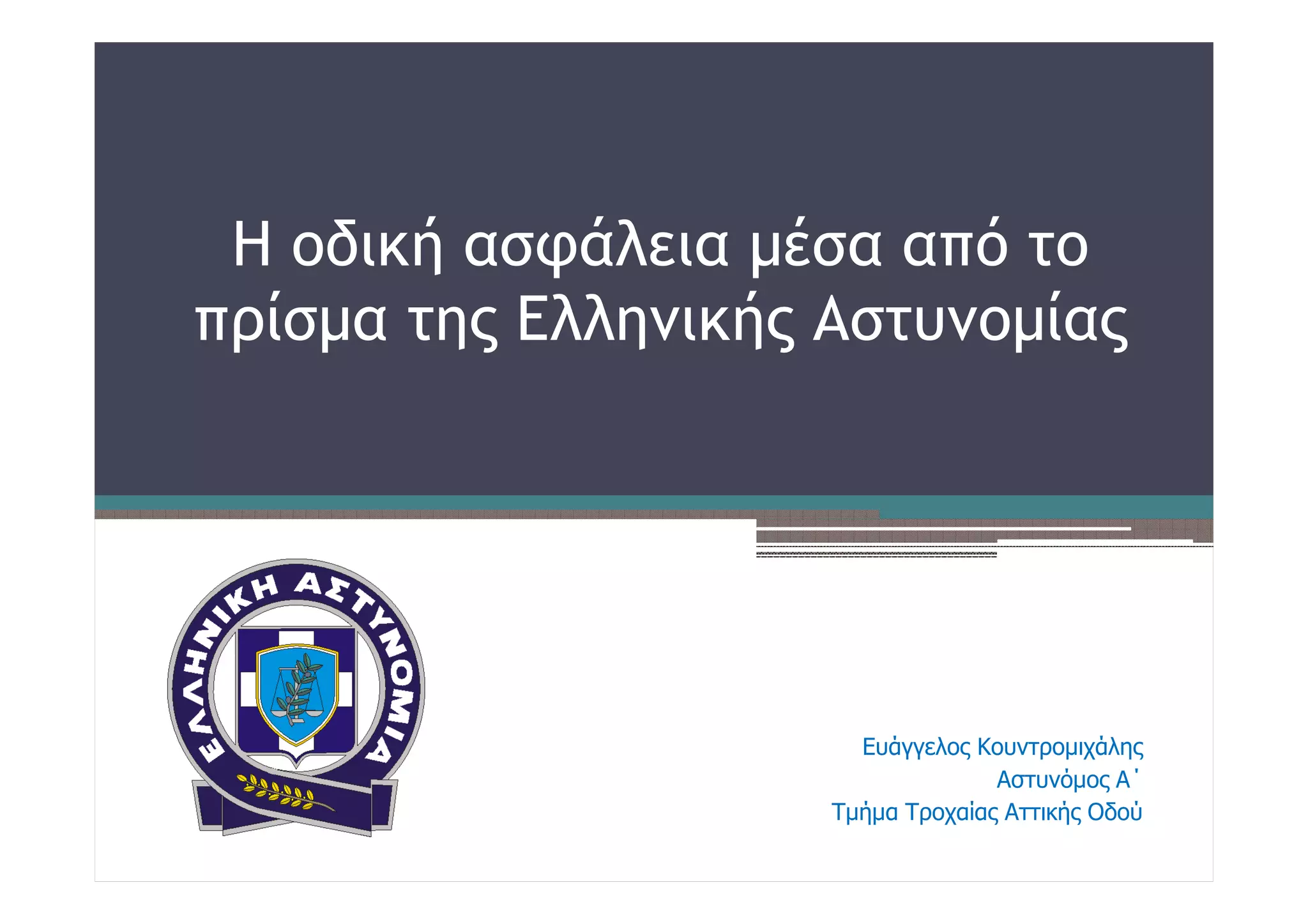 Τίτλος ομιλίας: «Η οδική ασφάλεια μέσα από το πρίσμα της Ελληνικής Αστυνομίας»