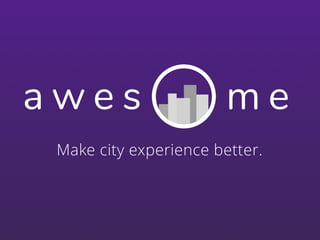 The document discusses a project aimed at improving city experiences by allowing users to post suggestions that can be acted upon by others. It highlights the use of technology, like Galileo satellites and Hypertrack, to enhance user engagement and city alerts. Additionally, it explores the market potential for local business ads, safety alerts, and event promotions.