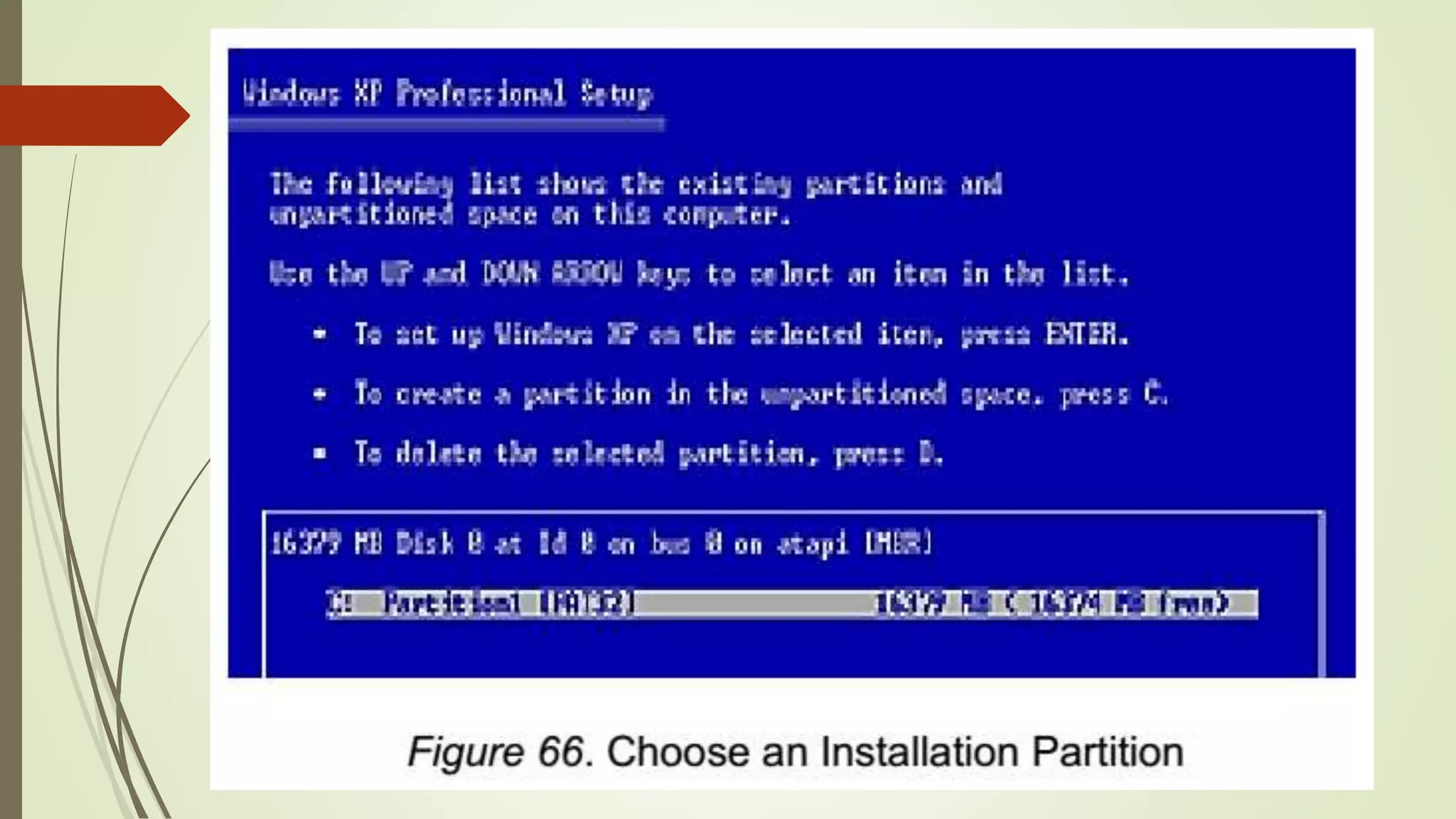 The document provides step-by-step instructions for installing the Windows XP operating system on a computer. It lists the minimum system requirements for Windows XP as a Pentium 233MHz processor, 64MB of RAM, 4.3GB of hard disk space, a CD-ROM drive, and a VGA or higher resolution monitor. The installation process involves inserting the Windows XP CD, selecting an installation partition on the hard drive to install Windows to, formatting and copying system files, and completing post-installation configuration steps like setting the time/date, network settings, and activating Windows.