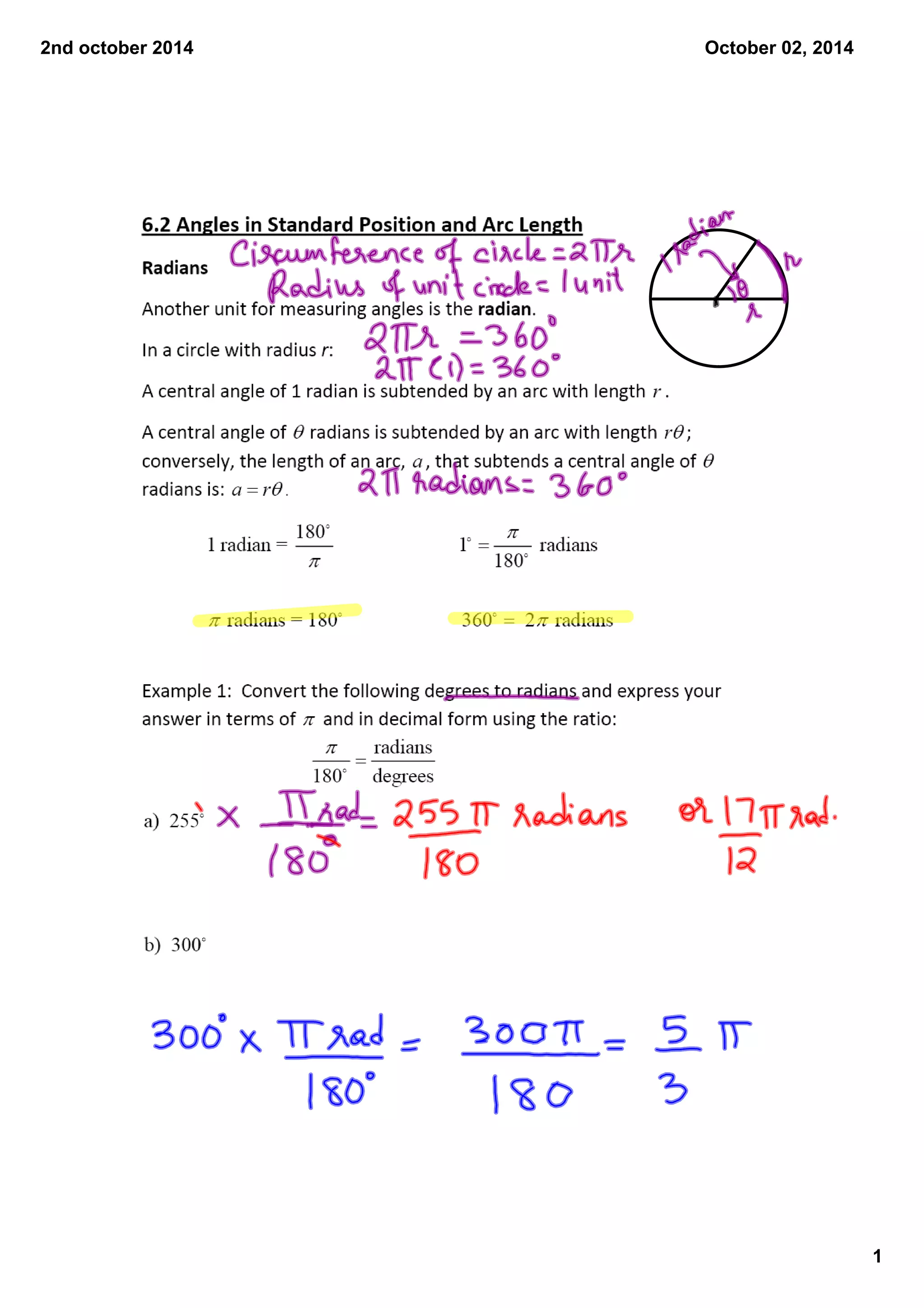 This document is a log of dates from October 2nd, 2014. It contains 5 entries all with the same date of October 2nd, 2014 listed 5 separate times.