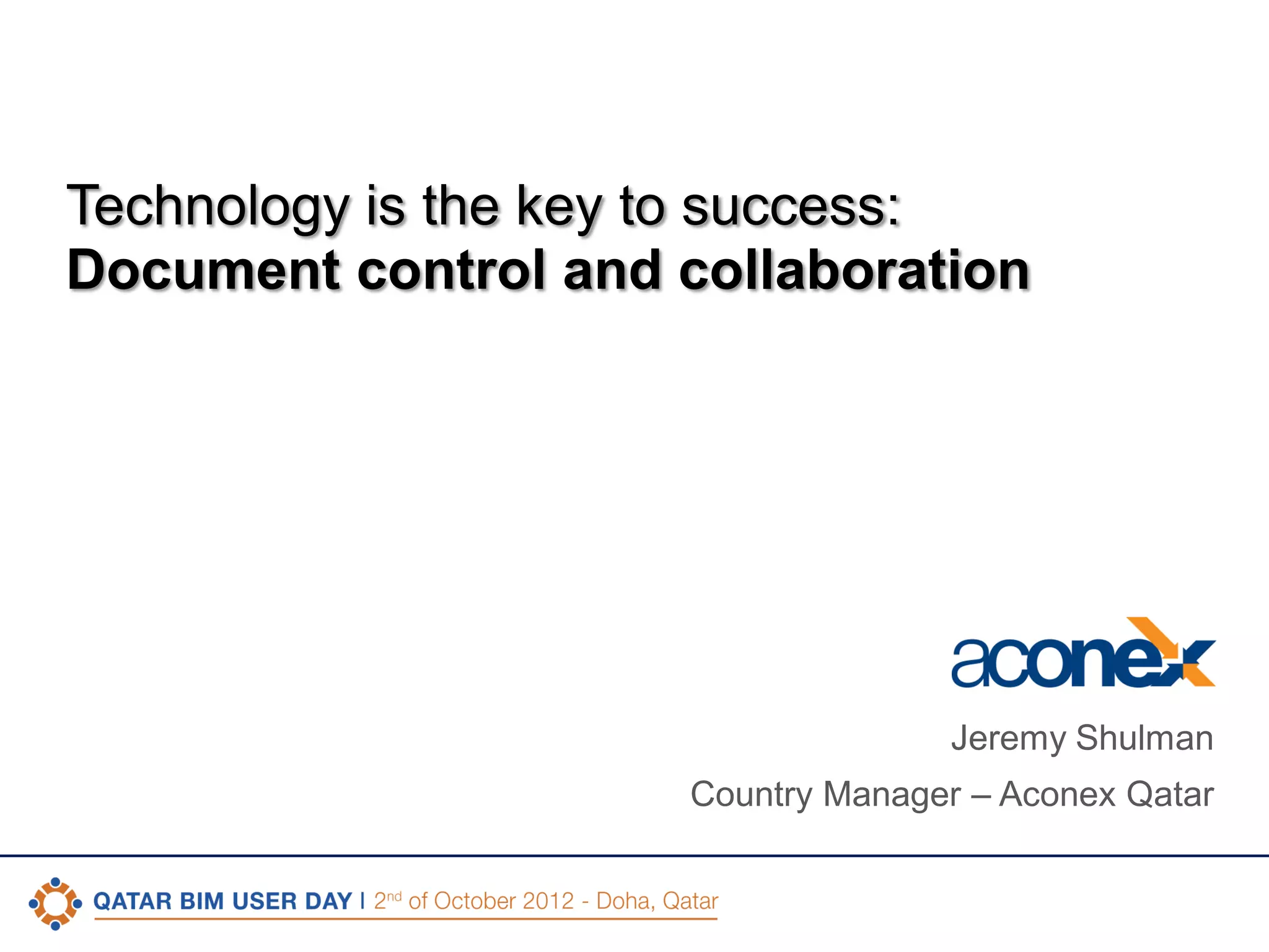 The document discusses the importance of technology, specifically building information modeling (BIM) and document control systems, in enhancing collaboration and productivity in construction projects. It highlights challenges in managing BIM files and the need for a robust collaborative platform to streamline workflows, reduce decision-making times, and improve overall project efficiency. The benefits of adopting a centralized project management system include significant time and cost savings and better audit trails for project documentation.