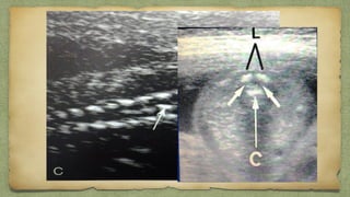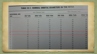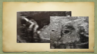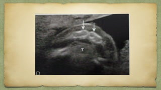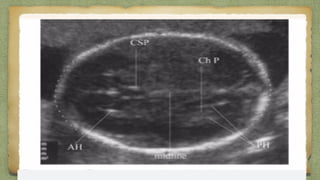 The document provides details about performing and interpreting a fetal anatomy scan between 18-20 weeks of gestation. It describes assessing various fetal anatomical structures including the brain, skull, abdomen, lungs, heart, spine, and limbs. Key measurements and normal ranges are outlined. Common congenital anomalies that may be detected on the scan are also described for various structures. The purpose of the anatomy scan is to evaluate fetal anatomy and screen for potential fetal anomalies.