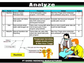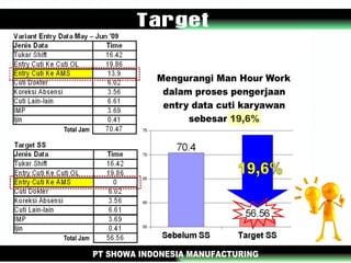 Dokumen tersebut membahas proses pengurangan jam kerja dalam penginputan data cuti tahunan dan besar. Saat ini terjadi penginputan ganda pada sistem cuti online dan sistem AMS yang menyebabkan penambahan jam kerja. Diusulkan integrasi sistem cuti online dan AMS agar data dapat tersinkronisasi secara real-time dan mengurangi penginputan ganda serta jam kerja. Hal ini diharapkan dapat meningkatkan efisiensi proses dan mengurangi bi