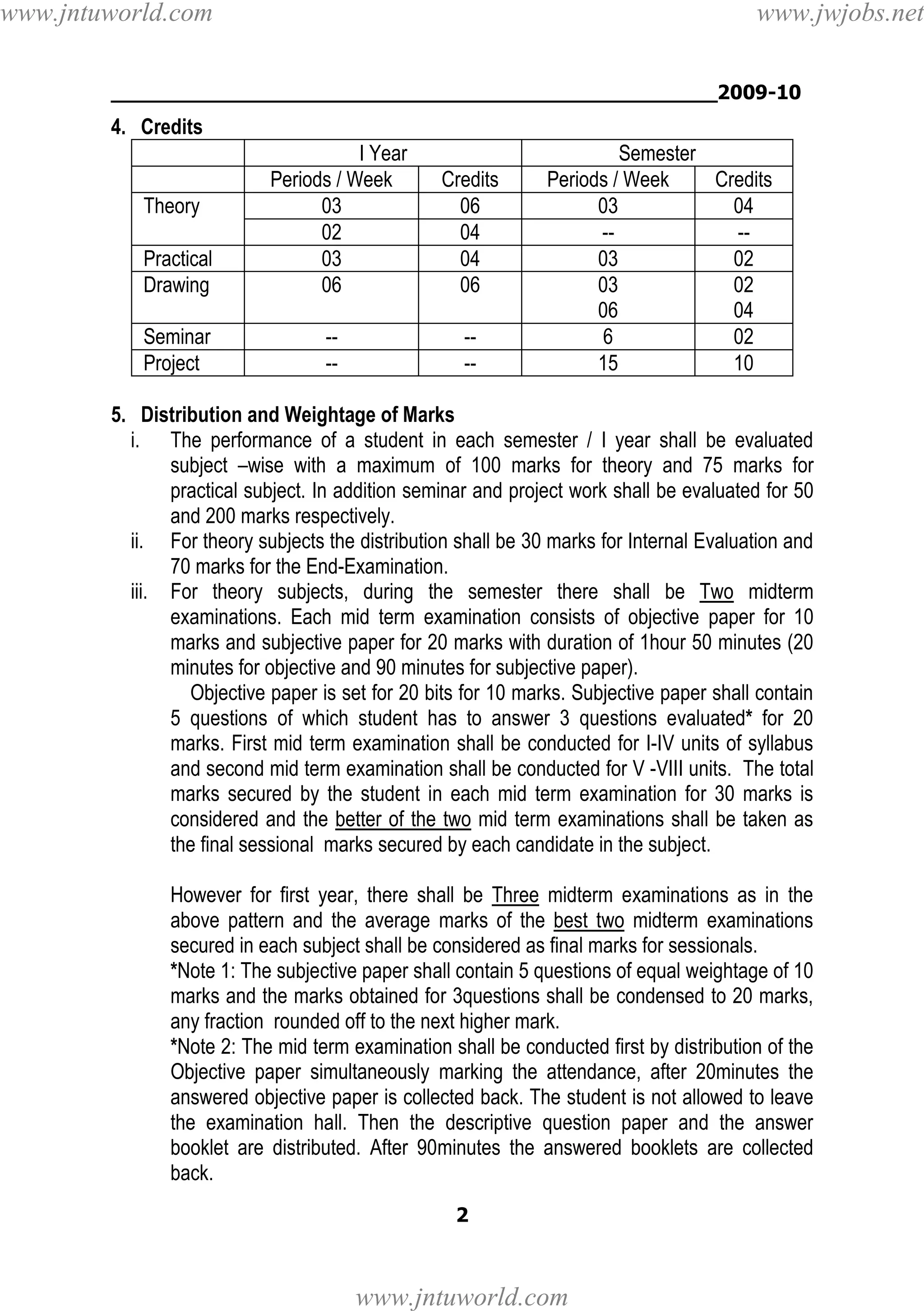 The document outlines the academic regulations for the B.Tech degree program at Jawaharlal Nehru Technological University (JNTU) for students admitted from the 2009-2010 academic year onwards.