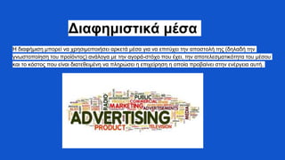 γνωστοποίηση του προϊόντος) ανάλογα με την αγορά-στόχο που έχει, την αποτελεσματικότητα του μέσου