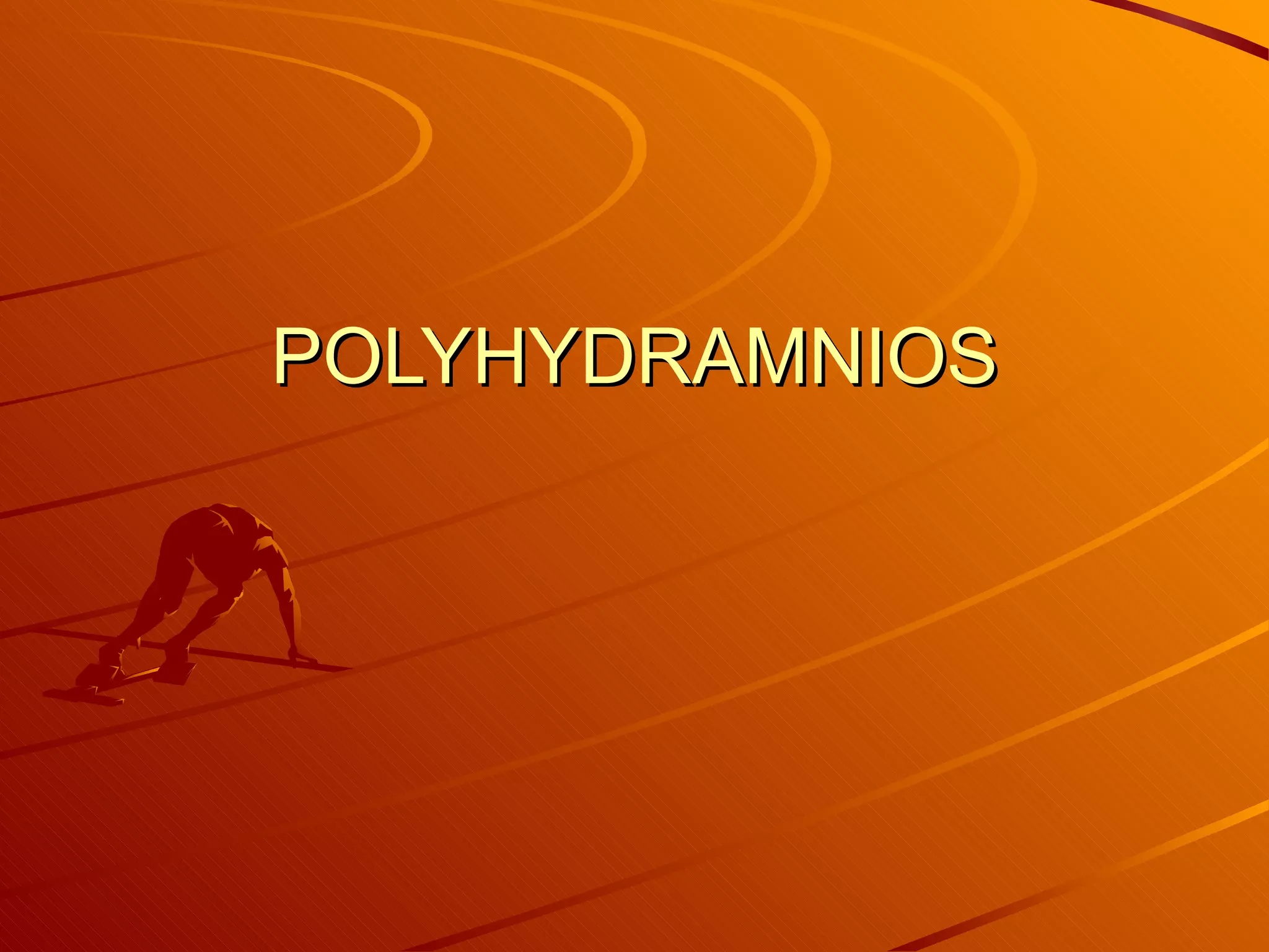 Polyhydramnios is defined as excessive amniotic fluid over 2000 ml or a single pocket over 8 cm. It occurs in 1-2% of pregnancies. Causes include maternal diabetes, fetal anomalies, multiple gestations, and idiopathic in 65% of cases. It can be acute or chronic based on onset. Acute presents before 20 weeks with symptoms like abdominal pain and vomiting. Chronic presents later with dyspnea, palpitations, and edema. Signs include an enlarged, tense abdomen where fetal parts cannot be distinguished easily.