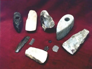 Оруђа и оружја за лов у почетку прављена су од грубо обрађеног камена.