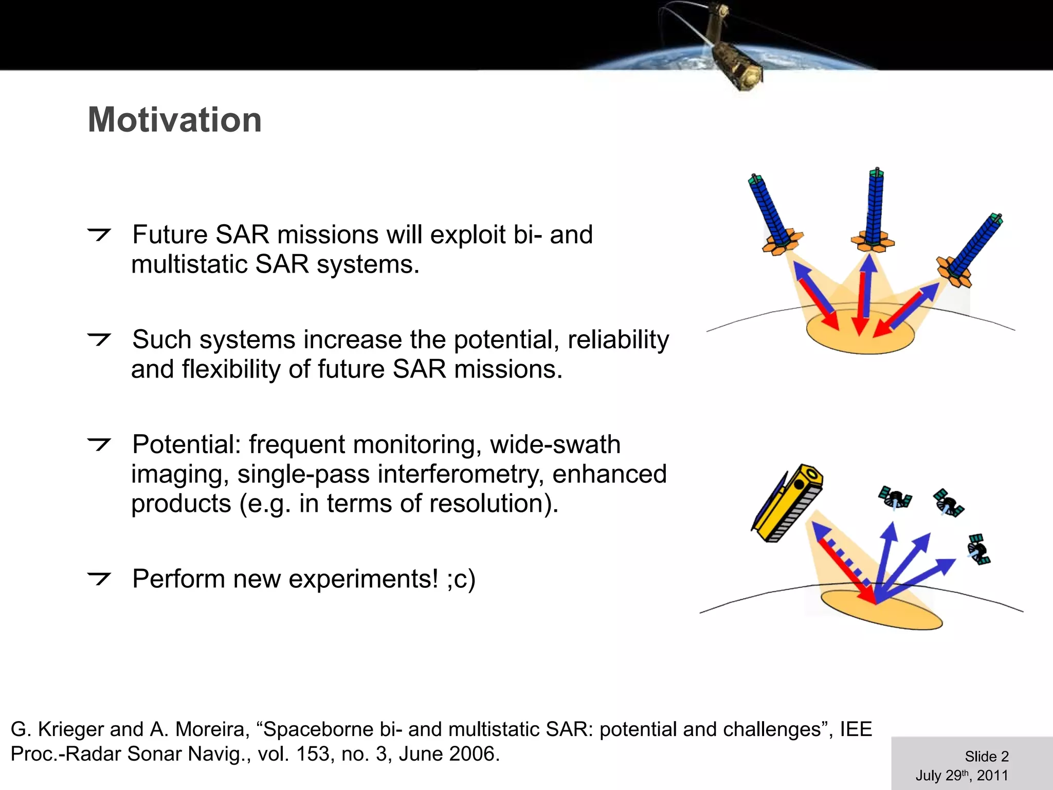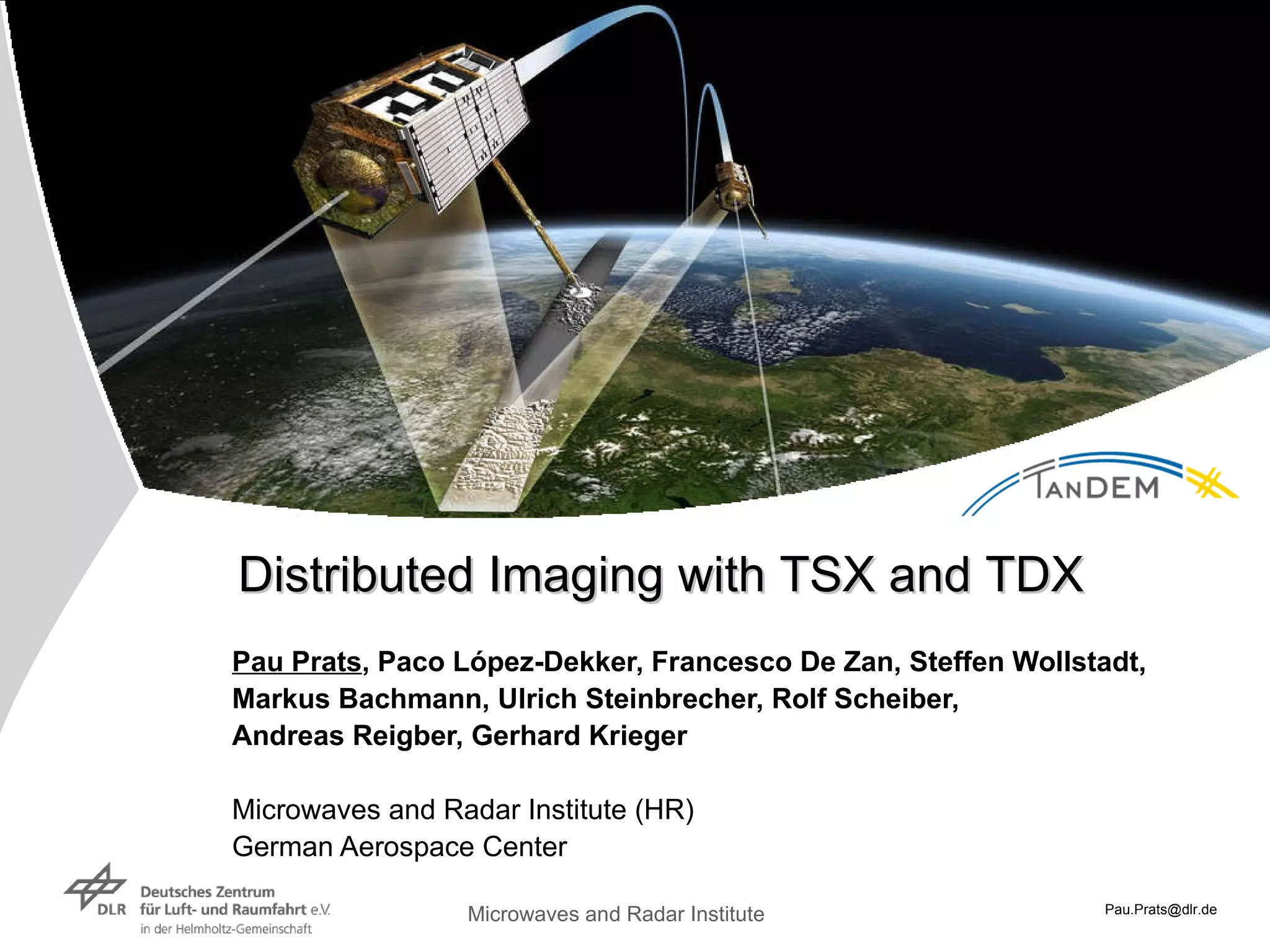 The document discusses experiments performed using TerraSAR-X (TSX) and TanDEM-X (TDX) satellites to demonstrate capabilities of distributed imaging with bi-static SAR systems. Three key experiments are described: