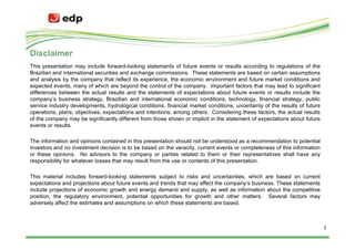 The presentation provides financial and operational details on EDP