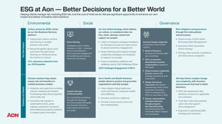 Aon reported its second quarter 2022 results. Total revenue grew 3% year-over-year to $2.8 billion. Operating margin was 23.5% and earnings per share were $2.33. Cash flows from operations were $1.1 billion. The presentation focused on Aon's quarterly performance and its strategy to deliver long-term growth and shareholder value through consistent free cash flow generation.