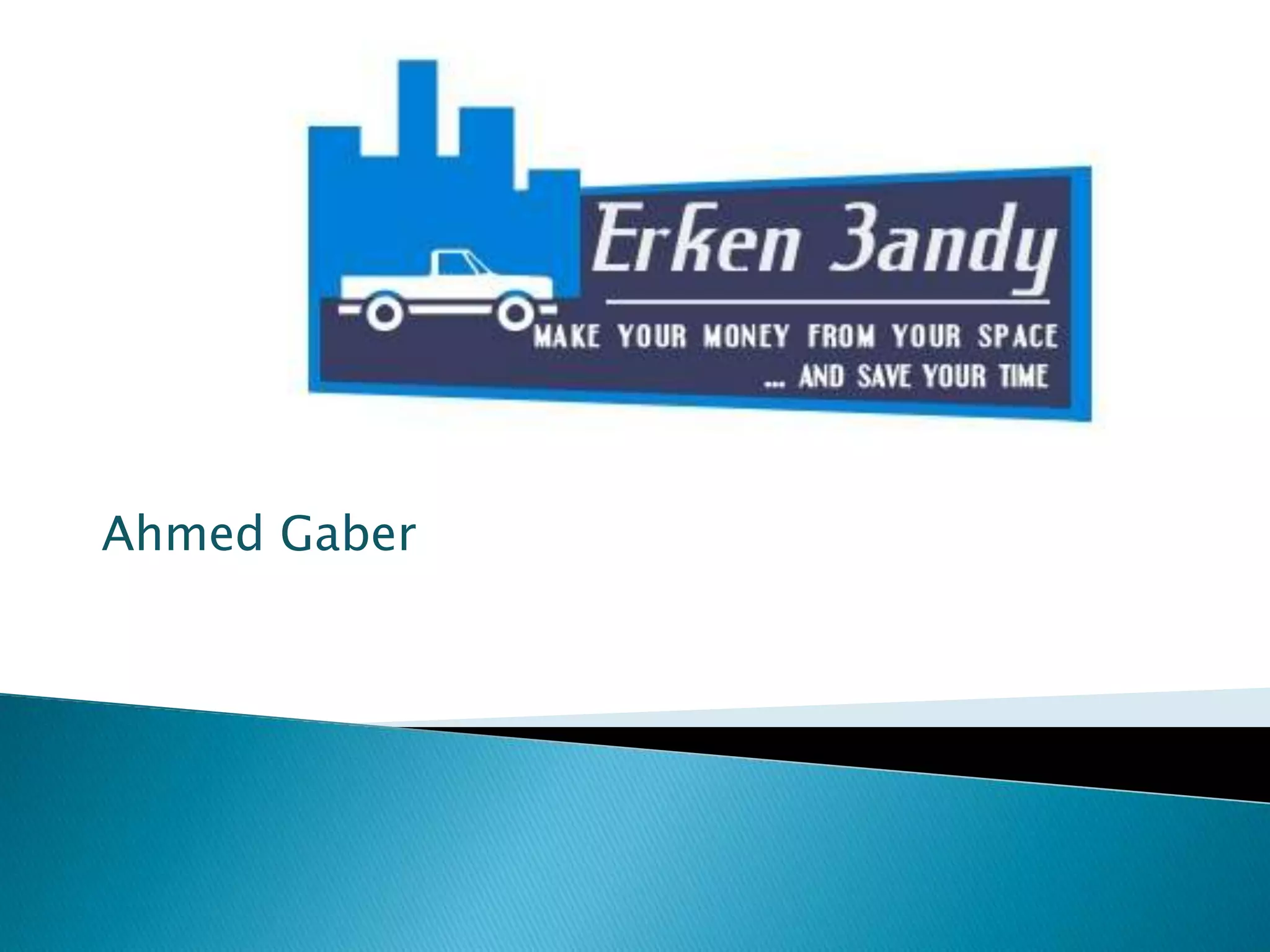 Erkn 3andy is a mobile app that allows parking spot owners to rent out their spaces and users to reserve spots. This saves time and fuel while reducing traffic by making better use of existing parking infrastructure. The app aims to take advantage of the lack of free parking in Egypt by connecting owners and users and taking a commission on listings. Future goals include expanding to more locations where drivers need parking and potentially being acquired by another company expanding into the Middle East market.
