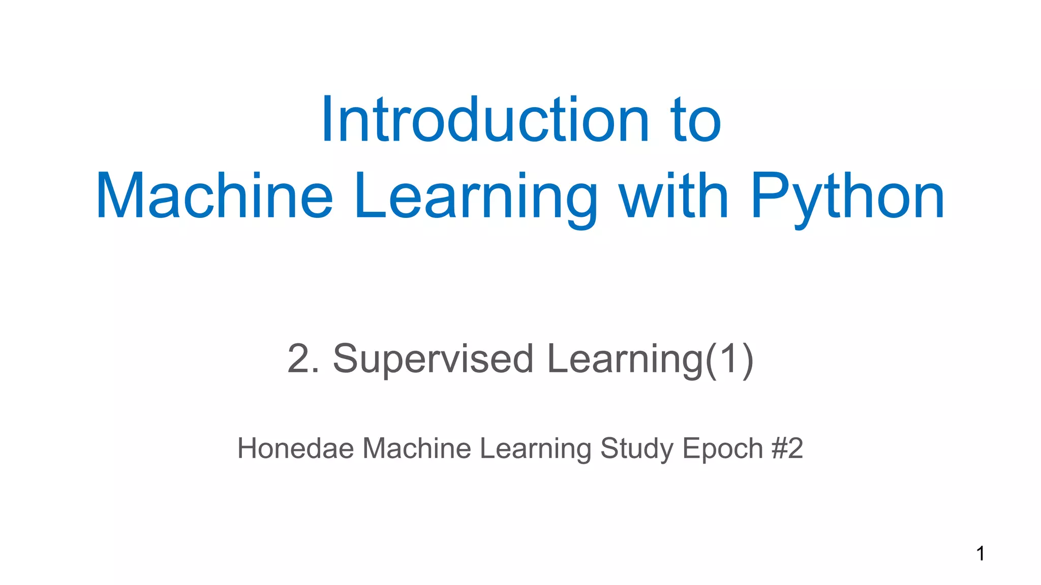 홍대 머신 러닝 스터디(https://www.meetup.com/Hongdae-Machine-Learning-Study/) (epoch #2)의 "파이썬 라이브러리를 활용한 머신러닝"(옮긴이 박해선) 슬라이드 자료.
