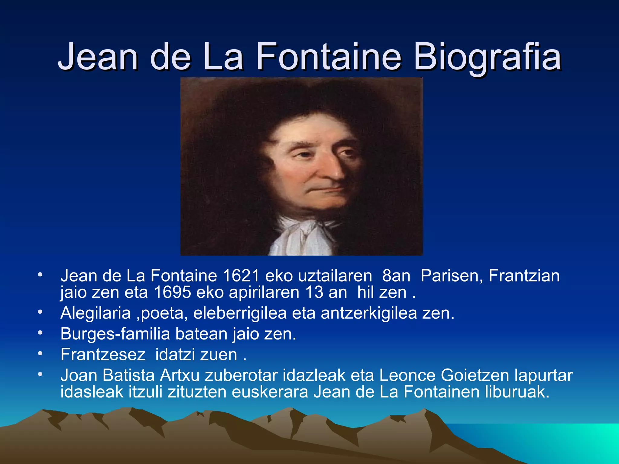 • Jean de La Fontaine 1621 eko uztailaren 8an Parisen, Frantzian