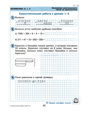 Самостоятельные и контрольные работы по математике для 3 класса. Петерсон Л.Г. Часть 1