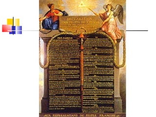 1791: Το πρώτοσύνταγμα της Γαλλίας: εγκαθιδρύει το πολίτευμα της Συνταγματικής Μοναρχίας το έθνος ανακηρύσσεται κυρίαρχο νομοθετική εξουσία ασκείται από τη Νομοθετική Συνέλευση (Βουλή ), που τα μέλη της εκλέγονται από τον λαό δικαίωμα ψήφου έχουν μόνο όσοι έχουν περιουσία και πληρώνουν φόρους εκτελεστική εξουσία ασκείται από βασιλιά & 6 υπουργούς δικαστική εξουσία αφαιρέθηκε από βασιλιά και κηρύχθηκε ανεξάρτητη .
