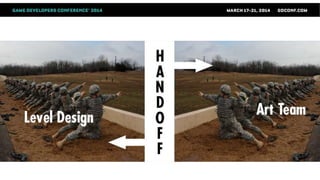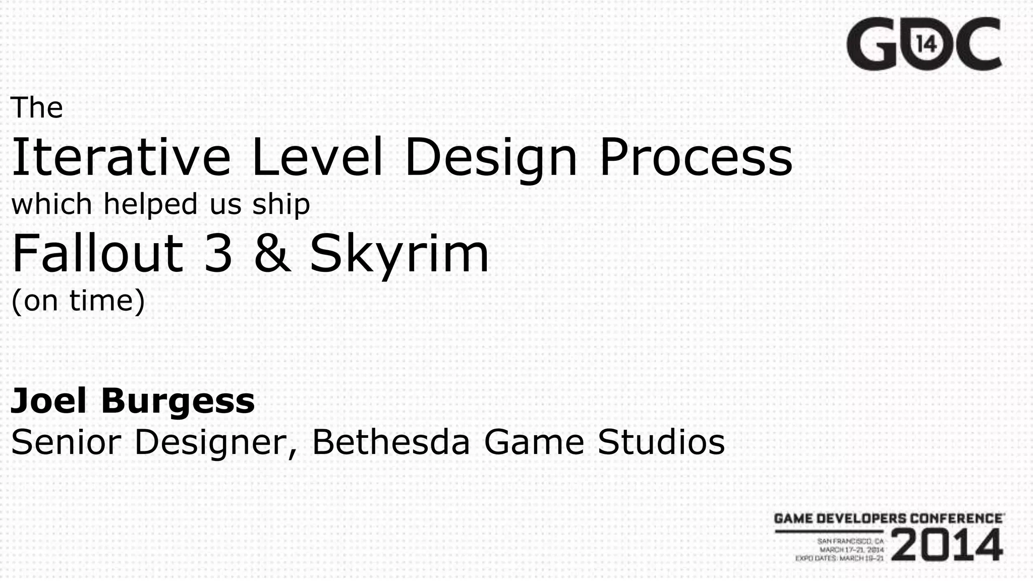 The document discusses the iterative level design process utilized by Bethesda Game Studios for the development of Fallout 3 and Skyrim, highlighting the significance of structured iteration in improving game quality and managing extensive content. It outlines the various phases of level design, from initial concept to final polish, emphasizing the importance of feedback and effective collaboration between teams. The author shares insights on maintaining creativity and quality under tight deadlines while ensuring a healthy work-life balance for developers.