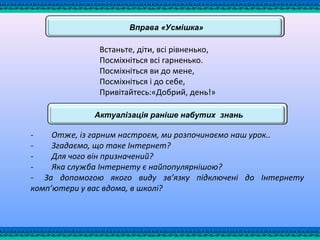 - Отже, із гарним настроєм, ми розпочинаємо наш урок..