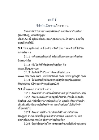 3.2.7 จัดทำำเอกสำรรำยงำนโครงงำนคอมพิวเตอร์ โดยนำำ
