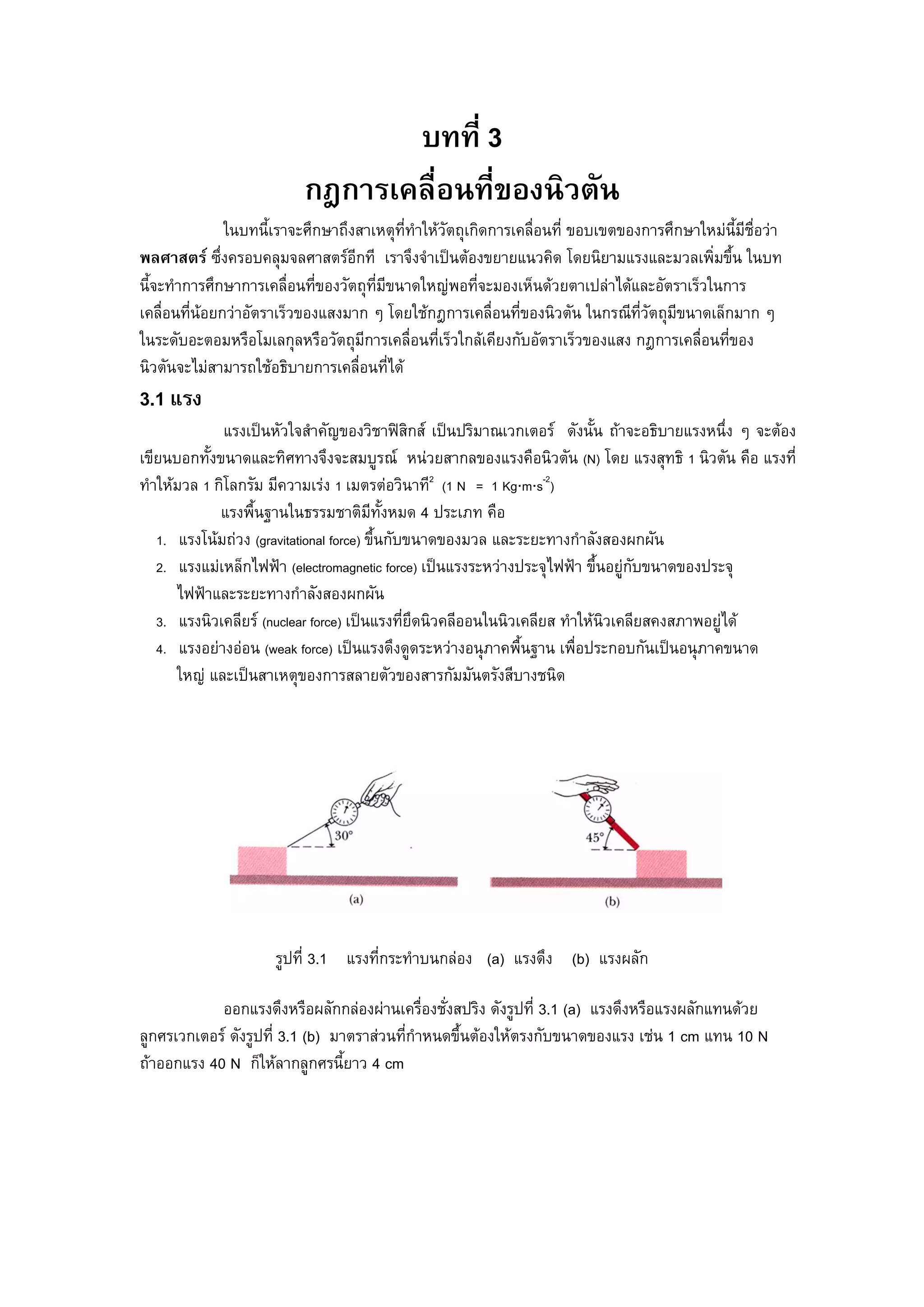 แรง F1 โดย F2 มีขนาดเทากับแรง F1 แตทิศตรงขาม ดังรูปที่ 3.8 (b) วัตถุจะรักษาสภาวะอยูนิ่งหรือถา