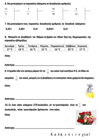 6. Να μετατρέψετετα παρακάτω κλάσματα σε δεκαδικούς αριθμούς:
