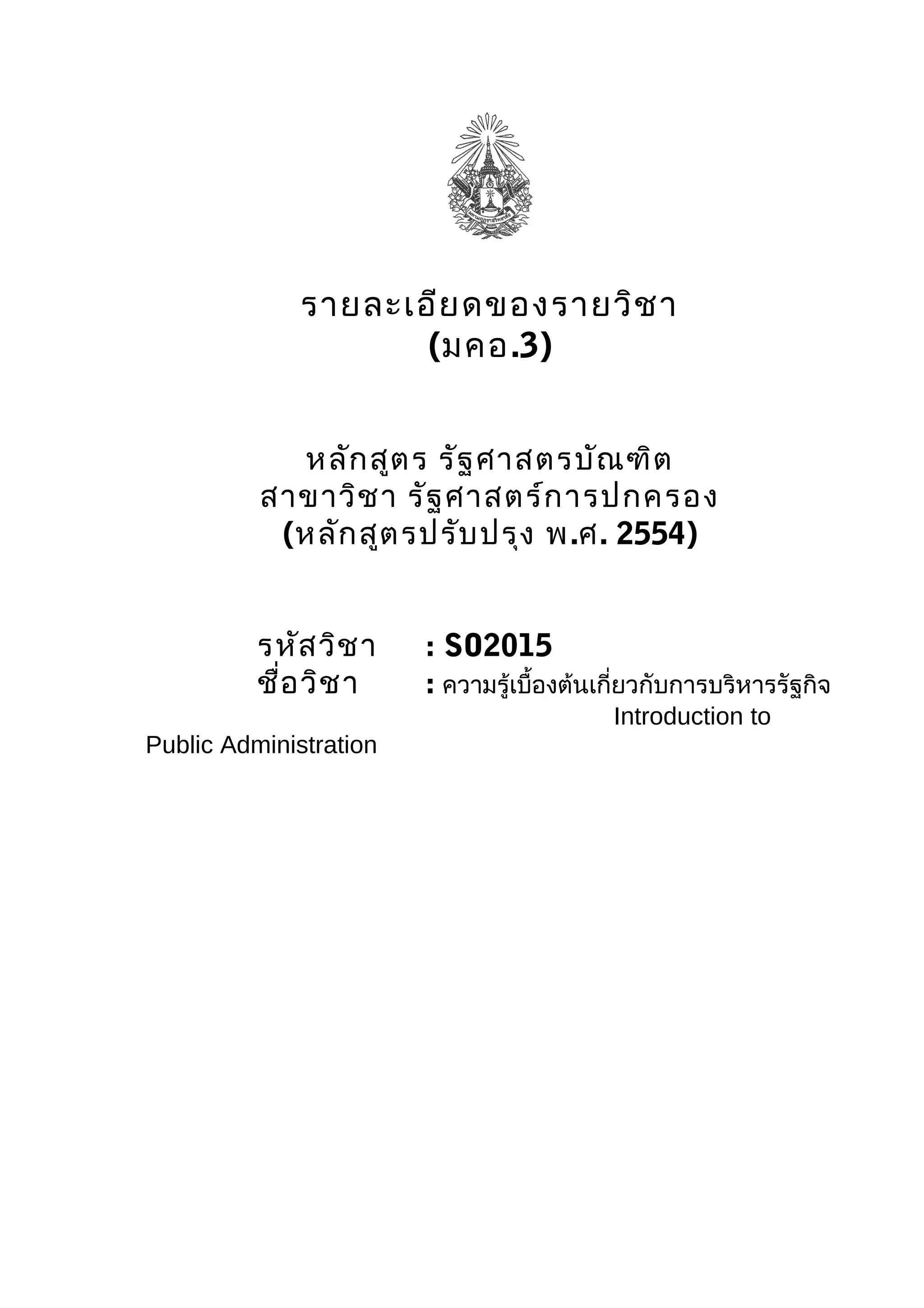 ชื่อรายวิชาภาษาไทย ความรู้เบื้องต้นเกี่ยวกับการบริหารรัฐกิจ