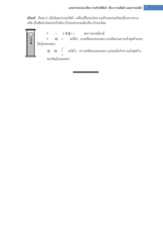 เอกสารประกอบเรียน รายวิชาฟสิกส เรื่องความตึงผิว และความหนืด 2