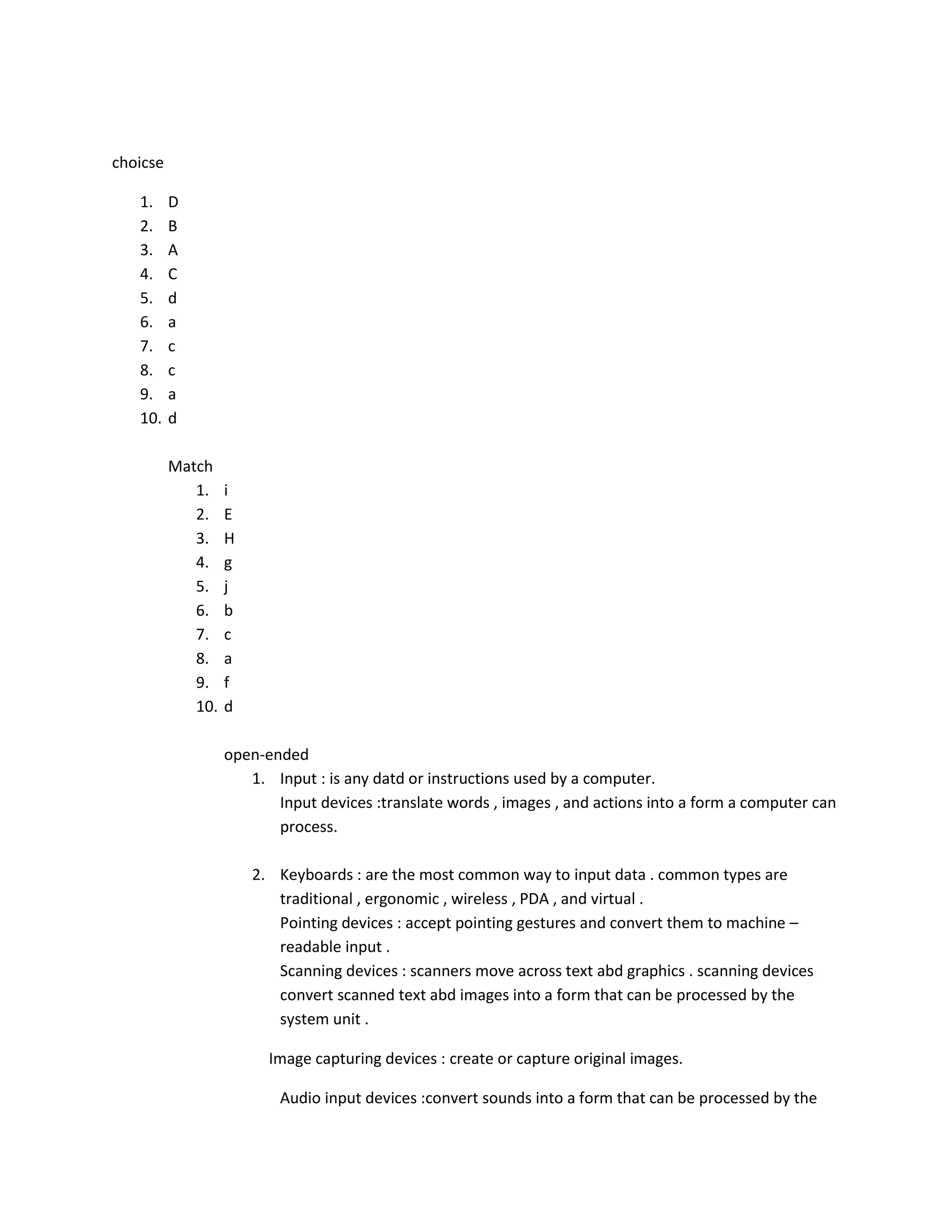 The document discusses different types of input and output devices for computers including keyboards, mice, scanners, printers, monitors and describes their main features and functions. It also covers audio/video devices like speakers, microphones, media players and technologies like mobile TV. Finally, it mentions devices that combine input and output capabilities such as fax machines, multifunction devices, and internet telephones.