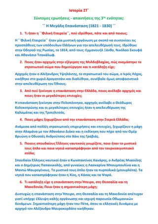 Ιστορία ΣΤ΄. Σύντομες ερωτήσεις - απαντήσεις της 3ης ενότητας: ΄΄Η Μεγάλη Επανάσταση (1821 - 1830)΄΄