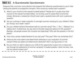 An MIS consists of three parts: people who gather and use the information, equipment like databases to store it, and processes for collecting, analyzing and sharing it. The system helps assess needs, develop useful internal and external data, and distribute findings. However, managers must balance information wants with needs and feasibility given limitations. Too much unfocused data can create overload instead of insights.
