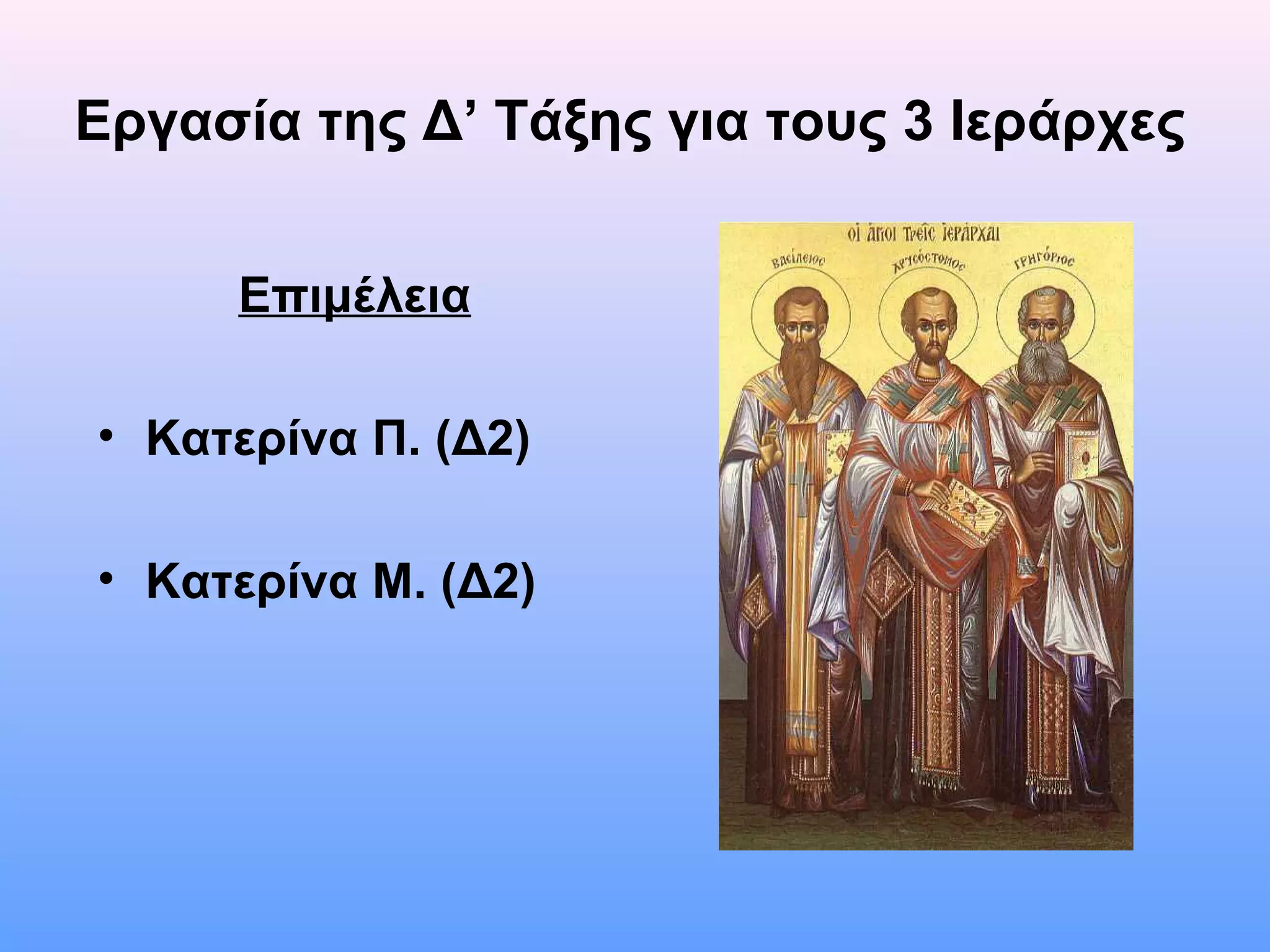 Εργασία της Δ’Τάξης για τους 3 Ιεράρχες