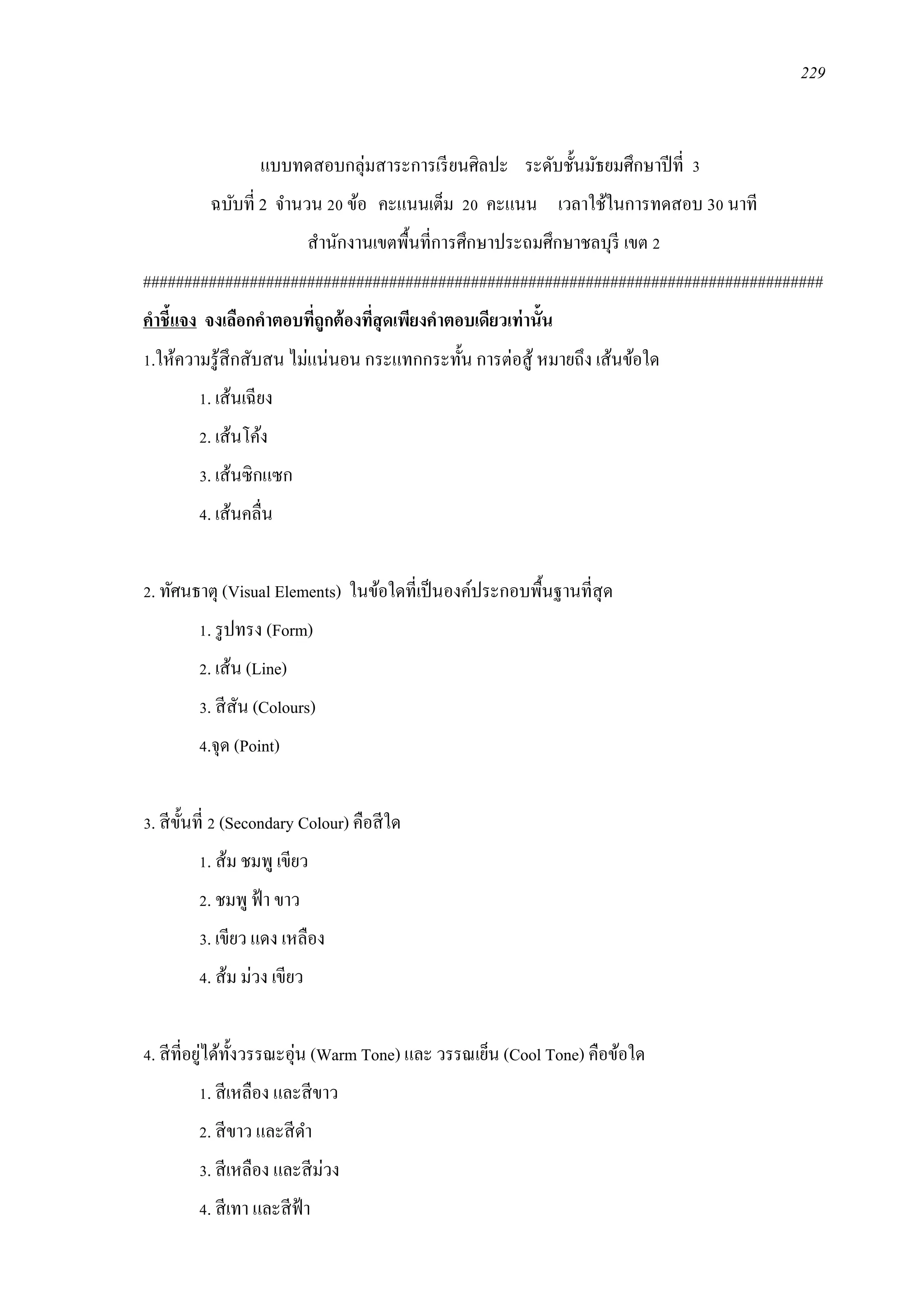 229 แบบทดสอบกลุ่มสาระการเรียนศิลปะ ระดับชั้นมัธยมศึกษาปีที่ 3 ฉบับที่