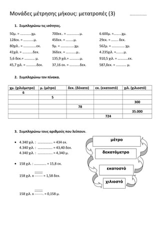 μοναδεσ μετρησησ μηκουσ (3) 1. Μονάδες μέτρησης μήκους: μετατροπές (3) ….….………..