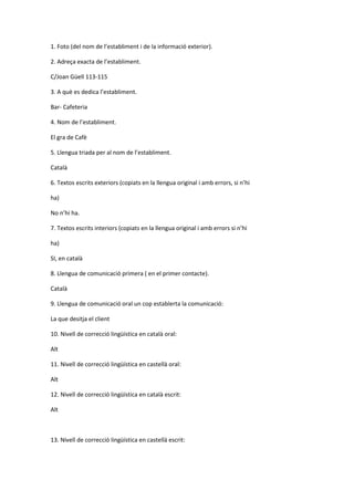 - Quina és la llengua dominant de l’establiment? Per què aquesta llengua i