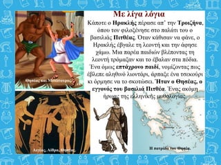 Αθήνα». Έτσι κι έγινε. Ο Θησέας σήκωσε το βράχο, πήρε τα δώρα του