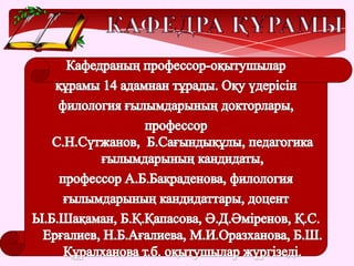алды. Сондай-ақ, кафедра оқытушылары