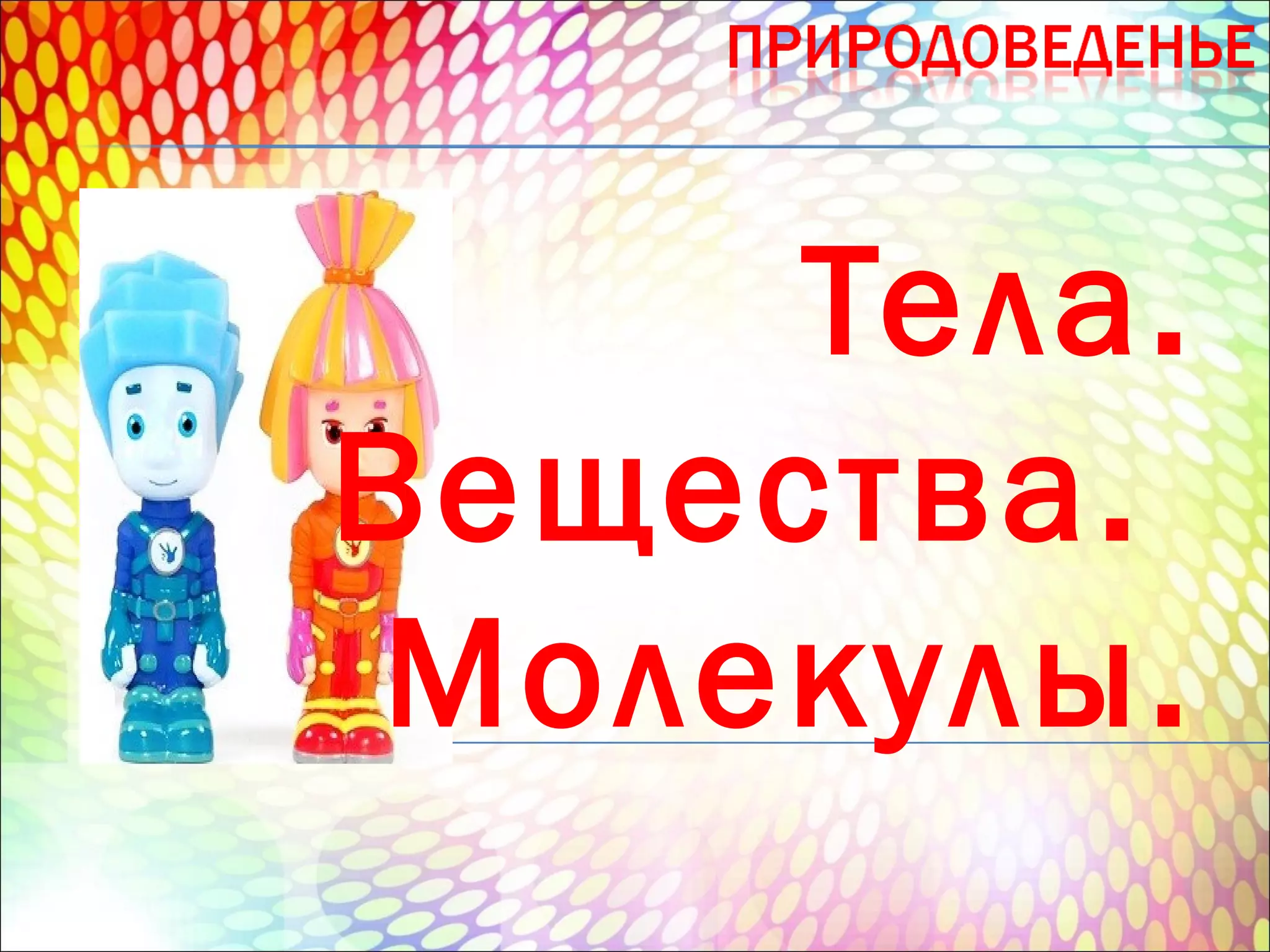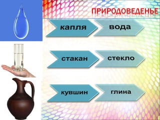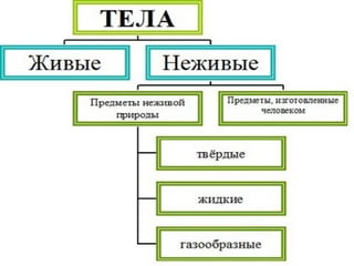 Документ обсуждает темы тел, веществ и молекул, упоминая, что в прошлом уроке разбирались состояния вещества: твёрдое, жидкое и газообразное. Приведены примеры, такие как мел, железный гвоздь и вода. Также указано на домашнее задание по этой теме.