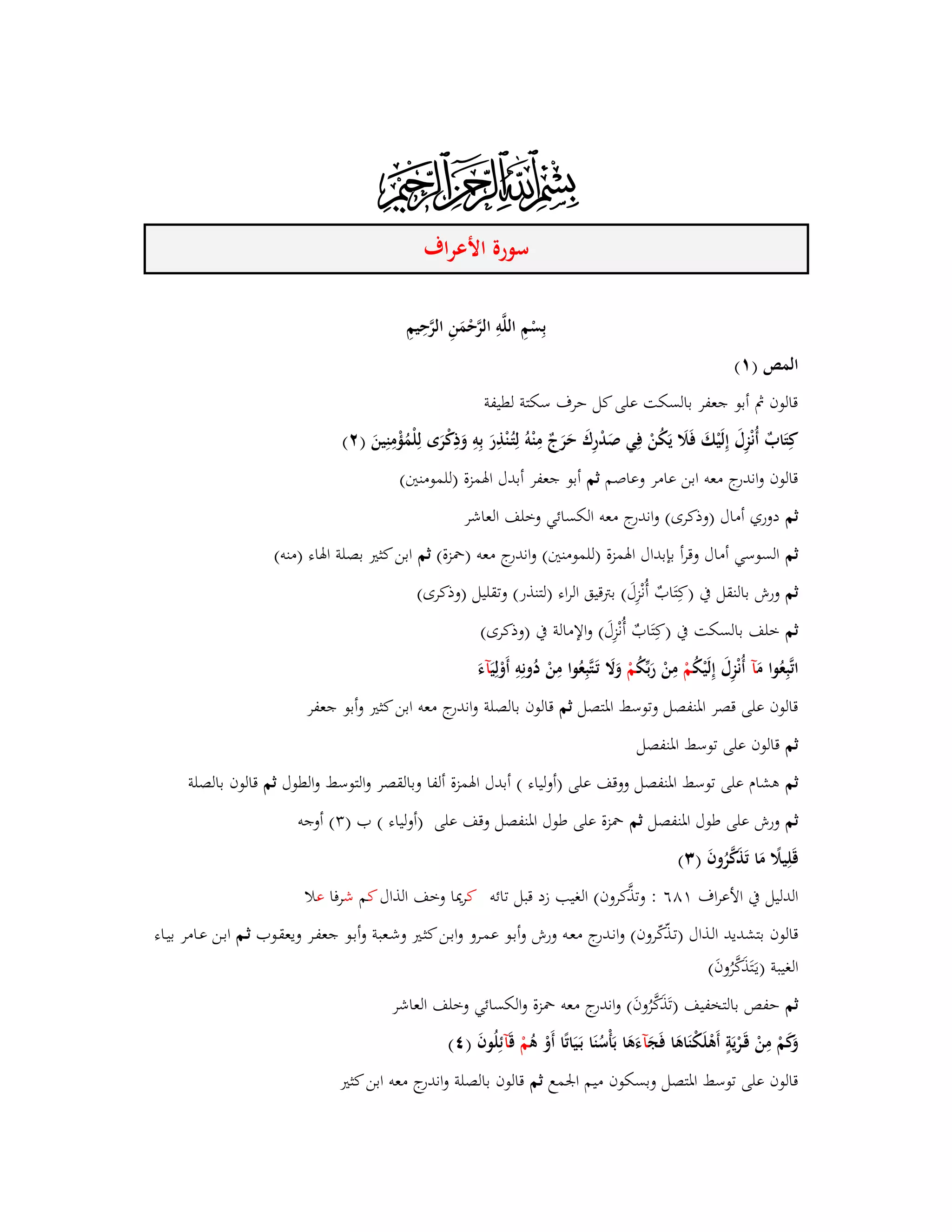 يتناول المستند فصول مختلفة من سورة الأنعام، بما في ذلك قراءات مختلفة للنصوص القرآنية والوقفات الصوتية. يشمل أيضًا توضيحات حول كيفية نطق الكلمات وتنفيذ القواعد الصفوية لجميع القراء. الوثيقة تحتوي على تحليل دقيق للاختلافات في التلاوة والقراءات المتنوعة.
