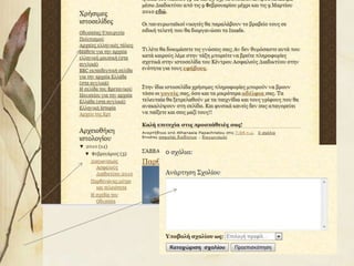 παρουσιαση αθανασια παπαχρηστου 3 γυμνασιο πολιχνησ 1. Ας ταξιδέψουμε μαζί στο χρόνο…μια πρόταση εκπαιδευτικής χρήσης του ιστολογίου στο μάθημα της ιστορίας.3ο Γυμνάσιο ΠολίχνηςΑθανασία Παπαχρήστου, φιλόλογος 2. Το ιστολόγιο ως ασύγχρονο εργαλείο, ενθαρρύνει τον αναστοχασμό επί του περιεχομένου και υποστηρίζει τη διαδικασία οικοδόμησης της γνώσης σε κοινωνικό πλαίσιο μέσω της αλληλεπίδρασης μεταξύ δημιουργού και χρηστών-επισκεπτών. Stahl, (2006) 3. 6. 7. 8. 9. 10. 11. 12. 13. 14. 18. Η σχεδία του Οδυσσέαμε οδηγό τη φαντασία των μαθητών και μαθητριών του Α4 και Α5 του 3ου γυμνασίου Πολίχνης 19. 20. 22. Το νησί της Καλυψώςμε οδηγό τη φαντασία των μαθητών και μαθητριών του Α4 και Α5 του 3ου γυμνασίου Πολίχνης 26. 27. 28.